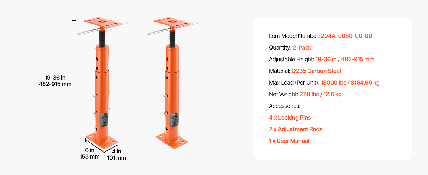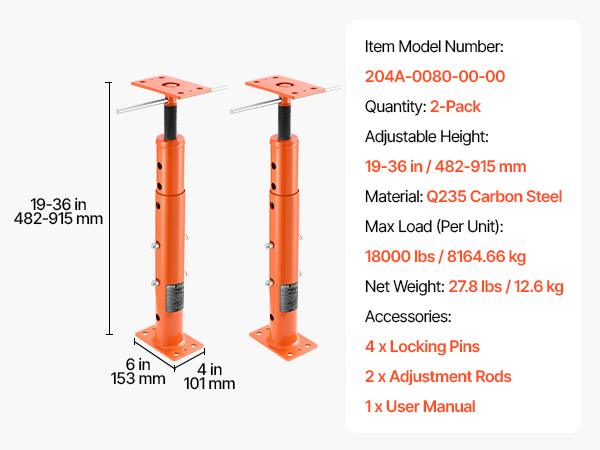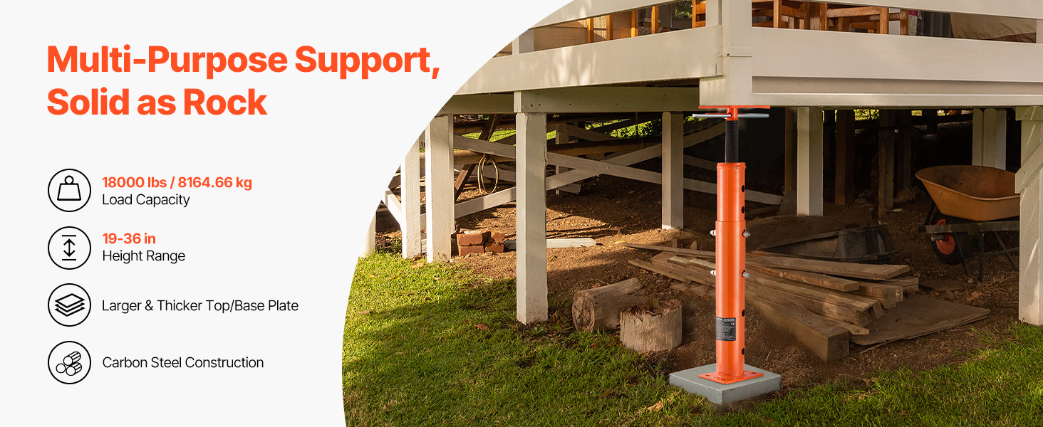 - Heavy-Duty Support: Our adjustable jack post is built from tough Q235 steel. Each jack handles up to 18000 lbs/8164.66 kg with ease—great for heavy lifting