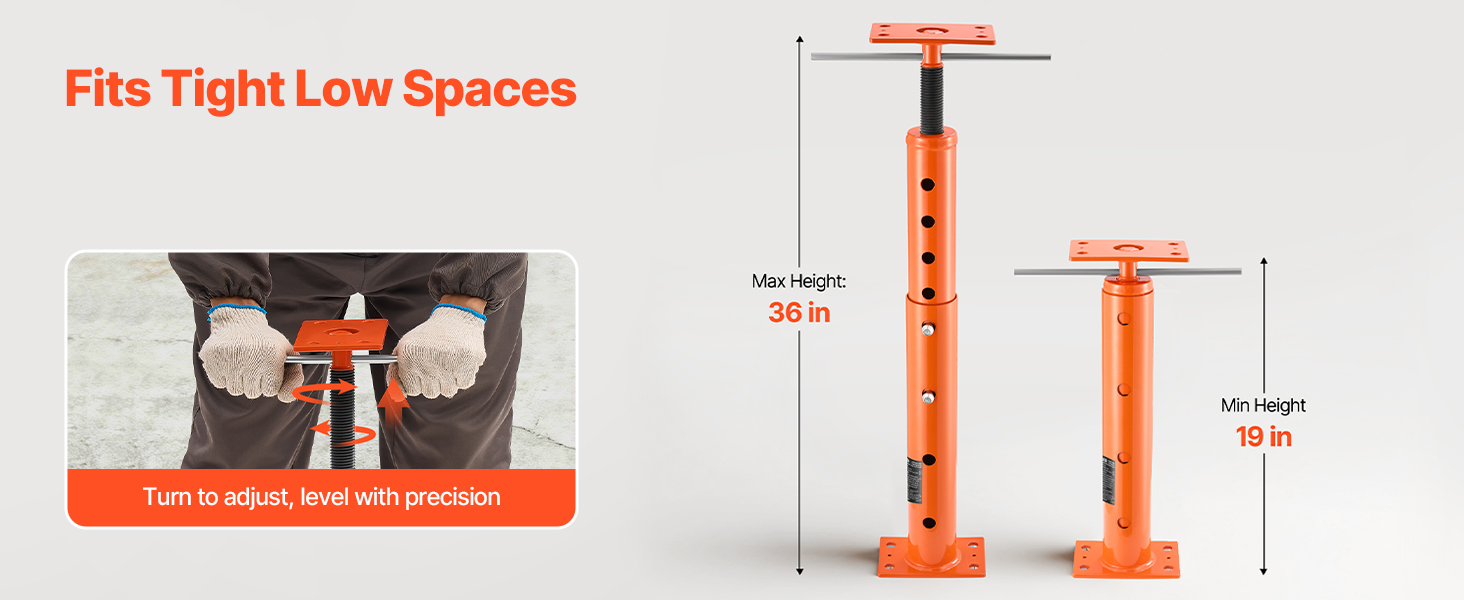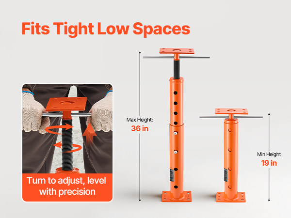 - Adjustable Height Design: Need flexibility? This house floor jack features an adjustable height design. It adjusts from 19 to 36 in/482 to 915 mm, so you can find the ideal height for your needs