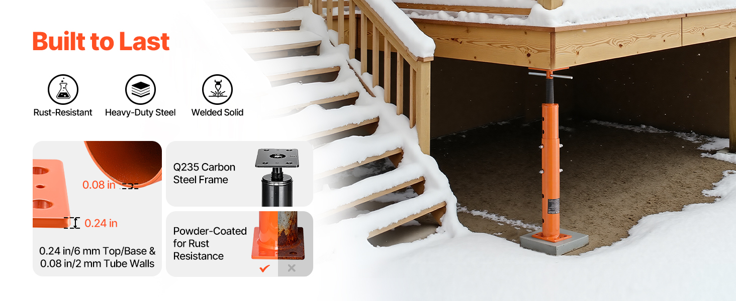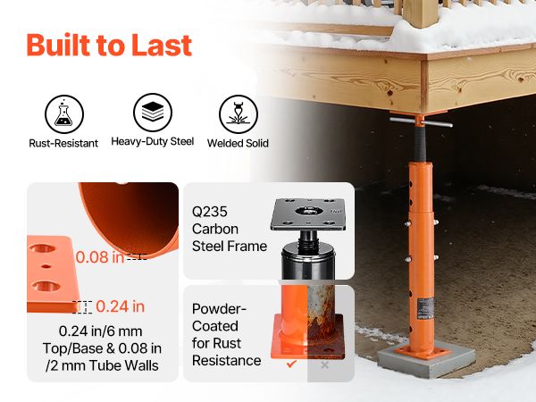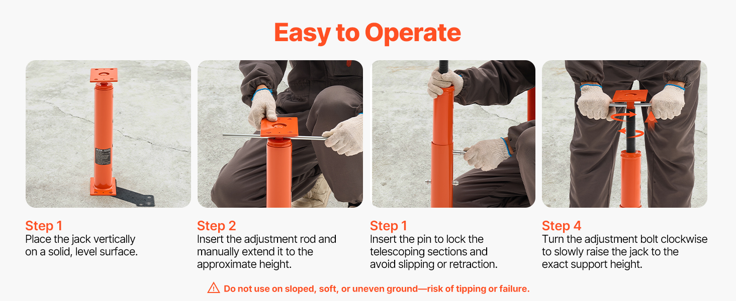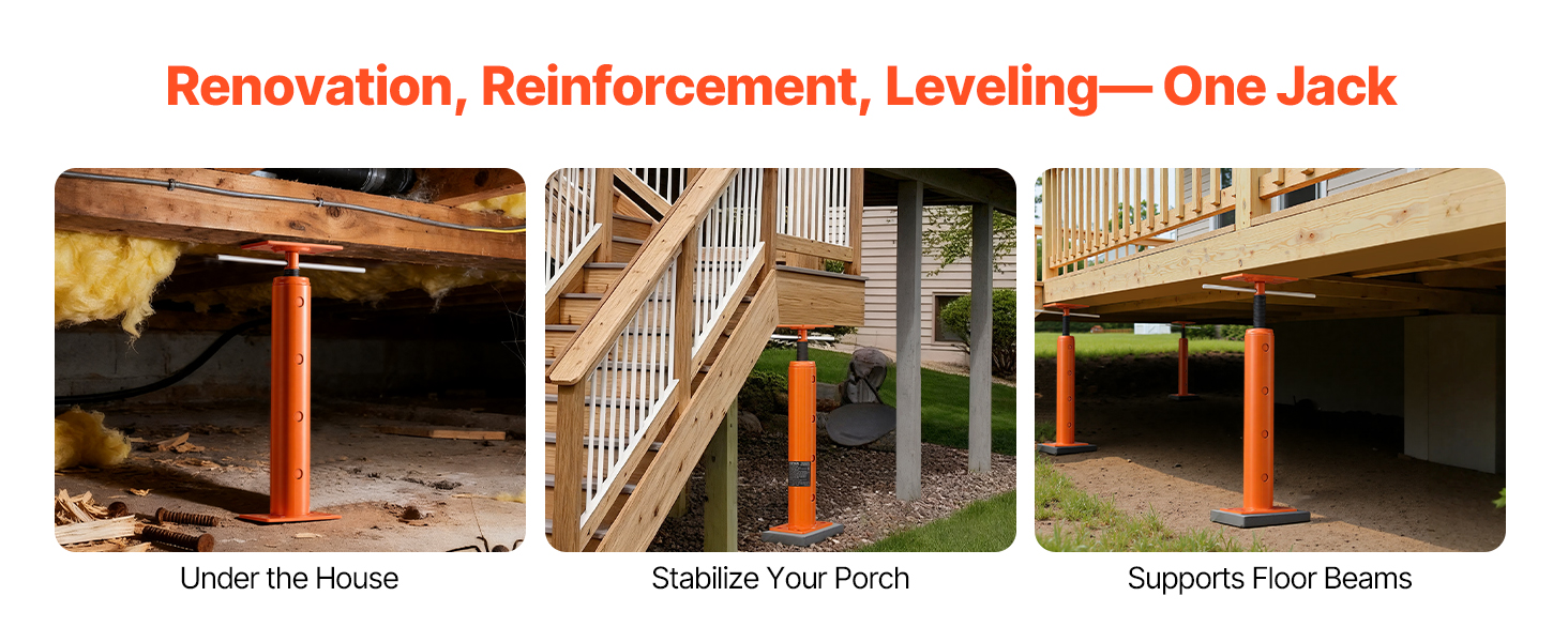 - Versatile Application: Our floor joist jack boasts an excellent load capacity and unique adjustable height design. Ideal for temporary support in various places like beams, patios, and construction—this jack does it all