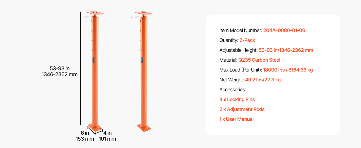 - Heavy-Duty Support: Our adjustable jack post is built from tough Q235 steel. Each jack handles up to 18000 lbs/8164.66 kg with ease—great for heavy lifting