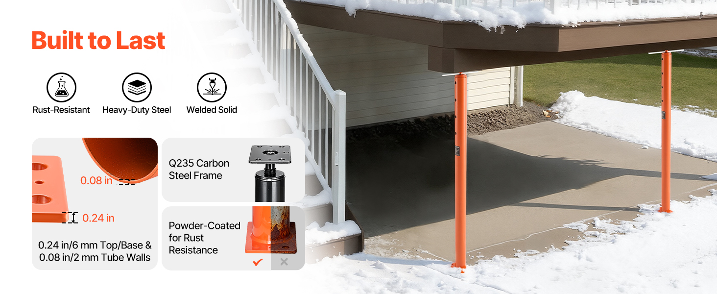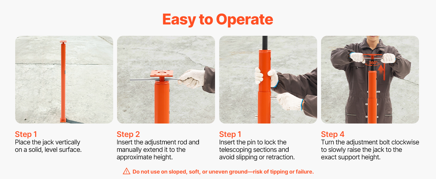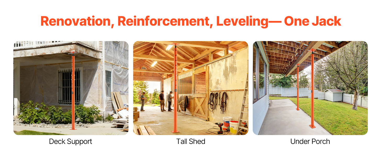 - Versatile Application: Our floor joist jack boasts an excellent load capacity and unique adjustable height design. Ideal for temporary support in various places like beams, patios, and construction—this jack does it all