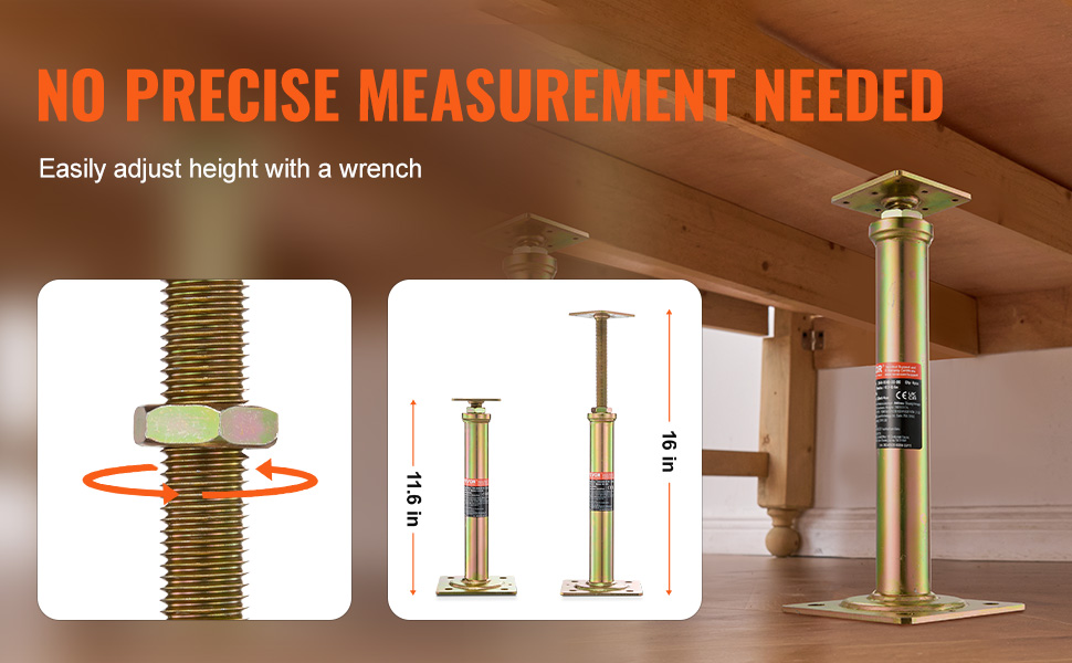 Adjust the basement floor jack’s height effortlessly with a wrench—no more fussing with complicated measurements.