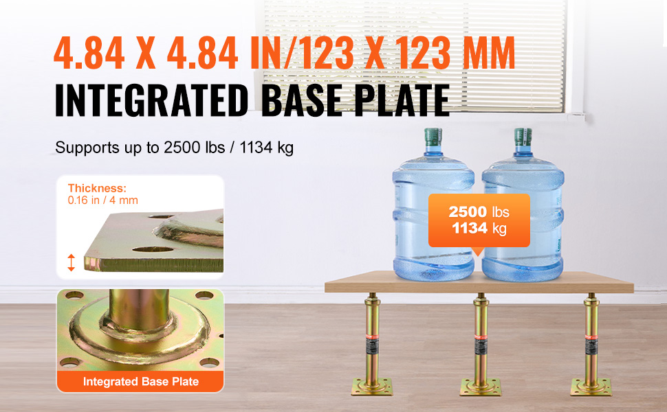 - Integrated Welded Base Plate: The adjustable floor jack's base plate is seamlessly welded to the pipe with an integrated welding process. This eliminates the need to fix the base plate to the pipe, making installation a snap without extra steps.