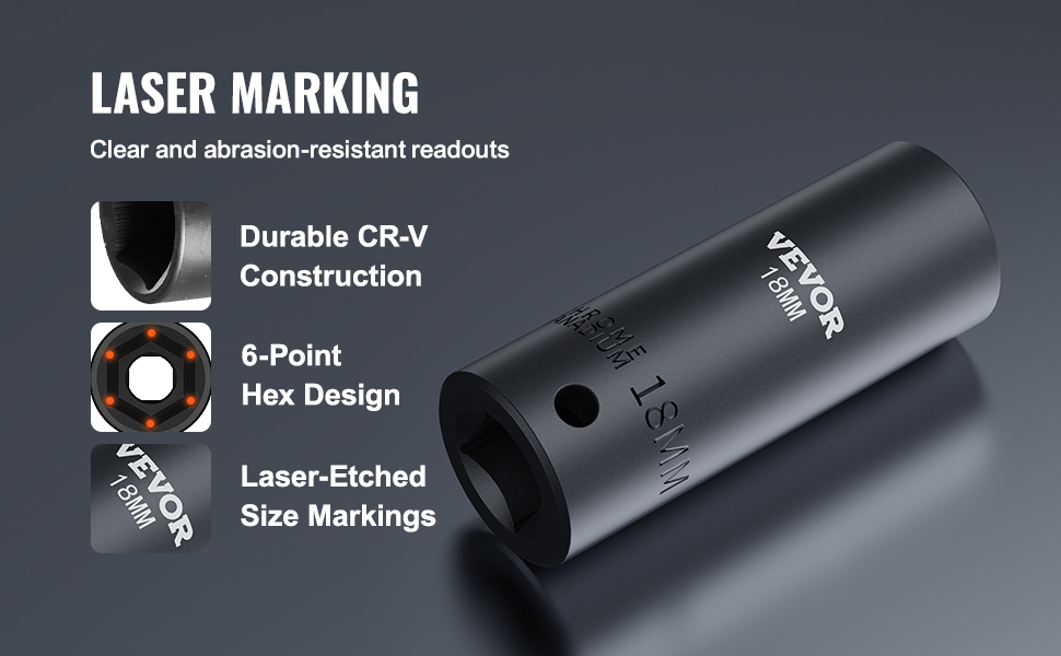 • 【SUPERIOR PERFORMANCE】- Whether you drive them with an impact wrench or by hand, these premium chrome vanadium sockets deliver superior performance. The impact socket set features a 6-point, high-torque design that contacts and grips the stronger flat sides of the nut or bolt head, not the weaker corners.