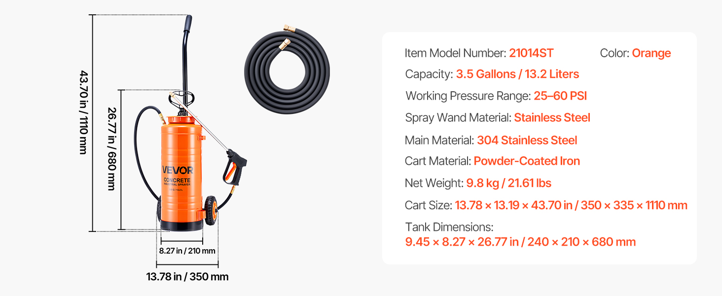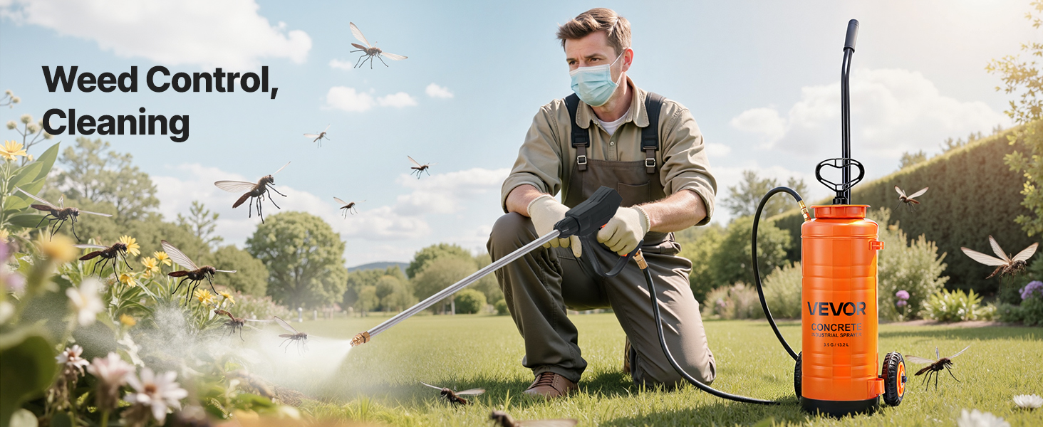 - Sprayers with wheels for easy moving: Time to spray your worries away! The tank sprayer with wheels can be easily moved without fatigue, or the gallon sprayer can be removed from the cart with ease. The stainless steel sprayer features a 3.5-gallon tank that efficiently covers large spraying tasks, significantly reducing the need for frequent refills, improving work continuity and efficiency.
