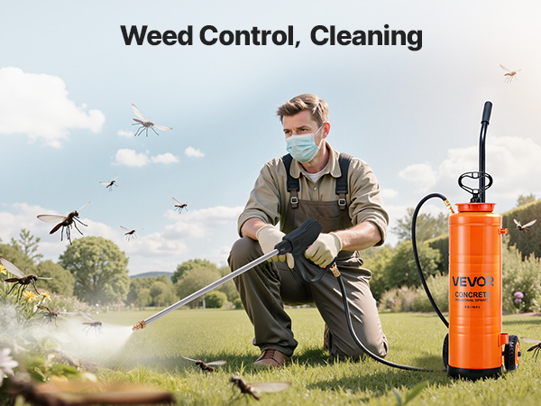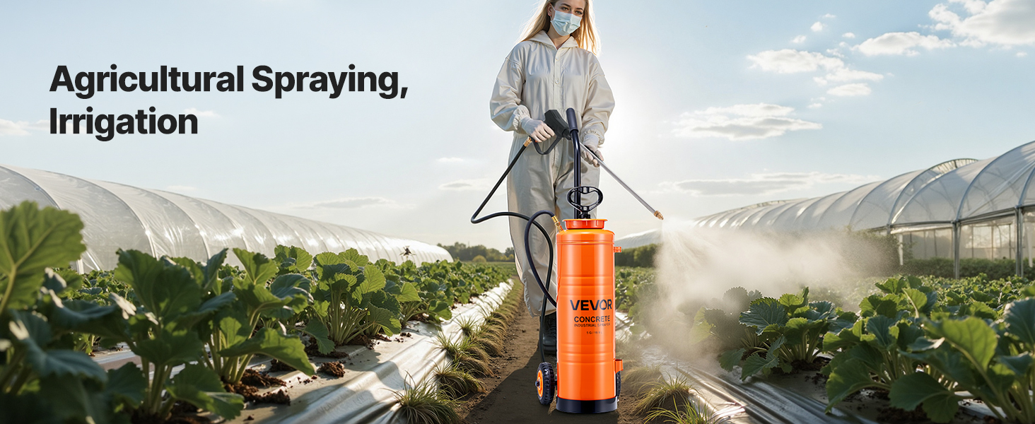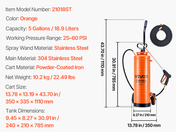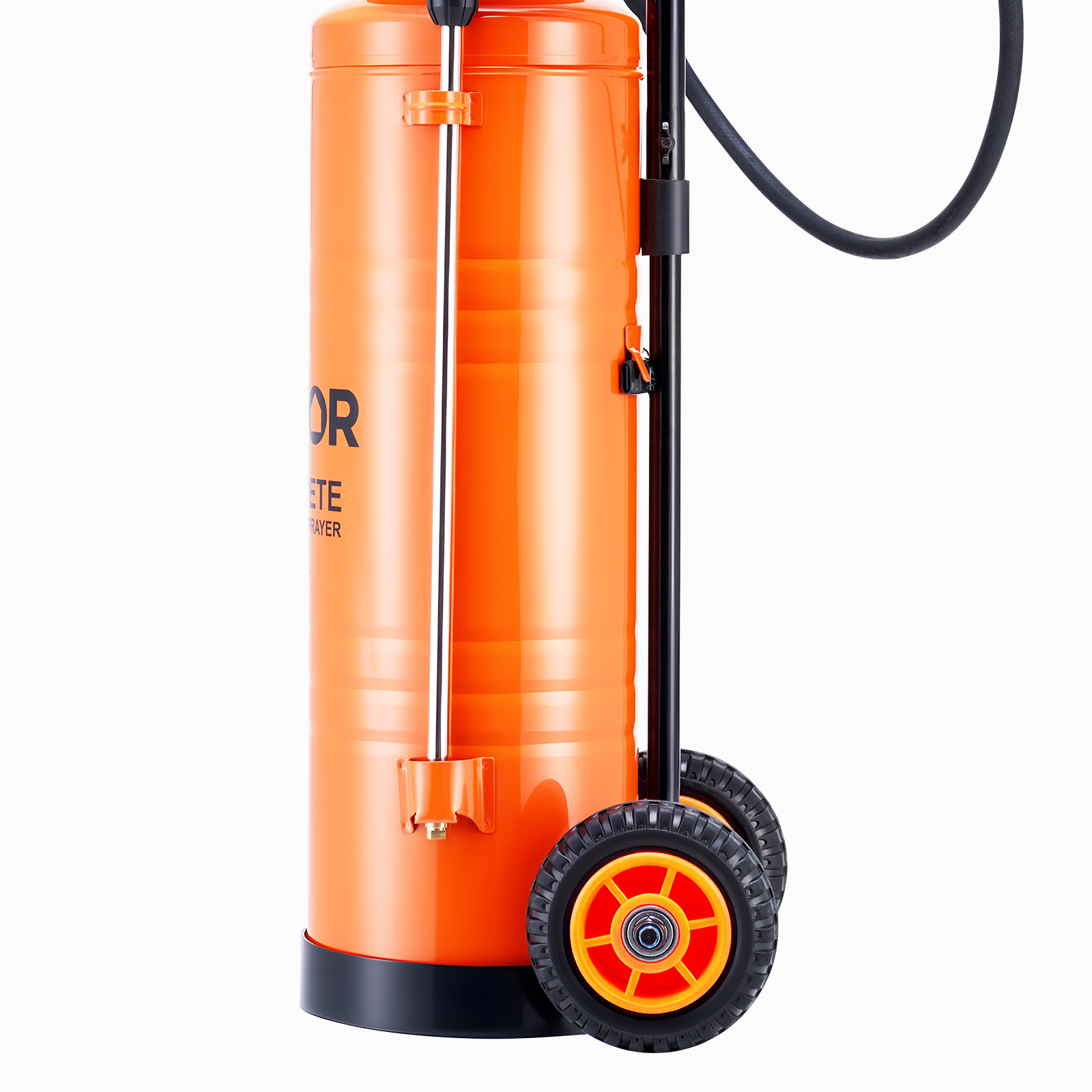 - Sprayers with wheels for easy moving: Time to spray your worries away! The tank sprayer with wheels can be easily moved without fatigue, or the gallon sprayer can be removed from the cart with ease. The stainless steel sprayer features a 5-gallon tank that efficiently covers large spraying tasks, significantly reducing the need for frequent refills, improving work continuity and efficiency.