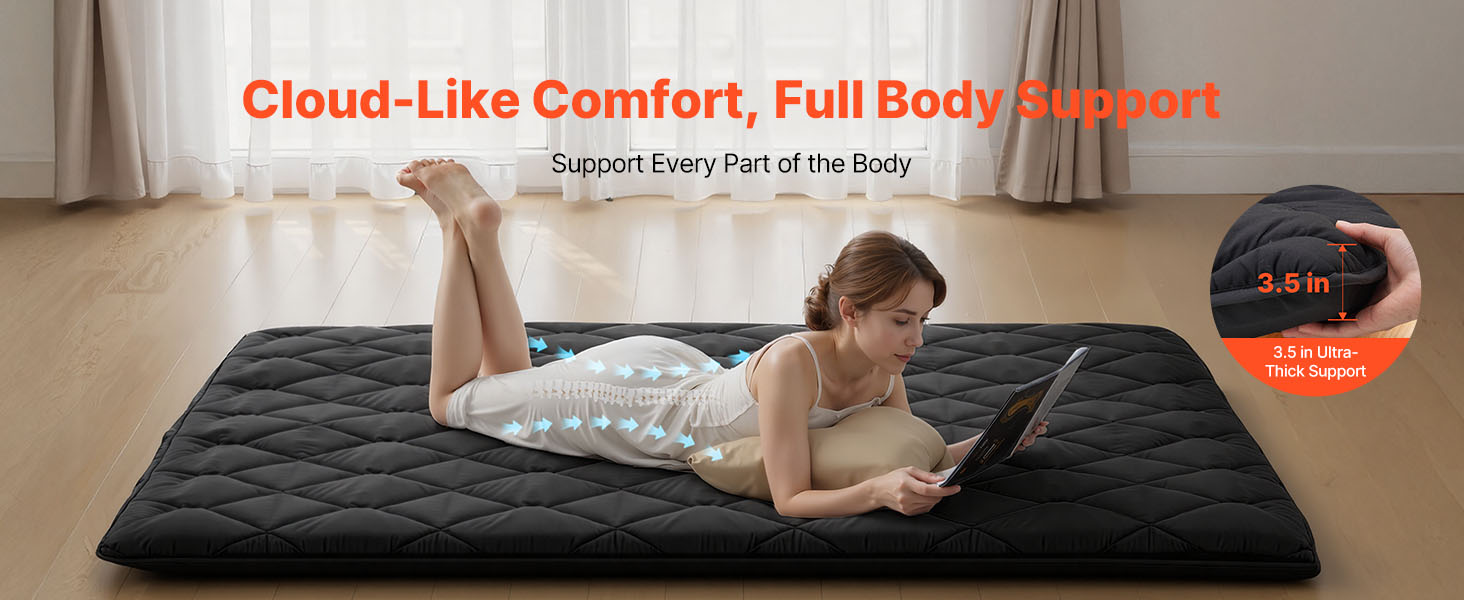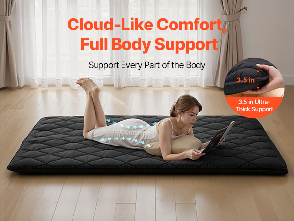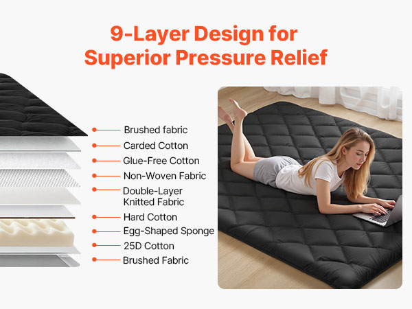 • Thickened 9-Layer Support: This 3.5 in tatami mat features a 9-layer structure with egg-crate foam and 25D memory foam for balanced support and comfort. Its ergonomic design contours to your body and helps protect your spine for a better night’s sleep