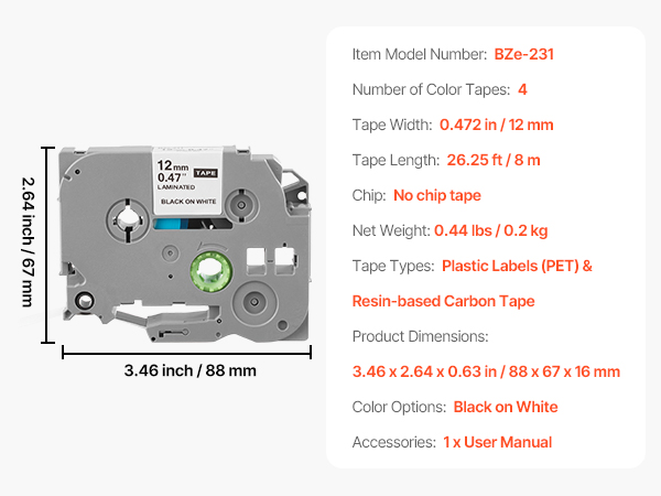 | Tape Width | 0.472 in / 12 mm |