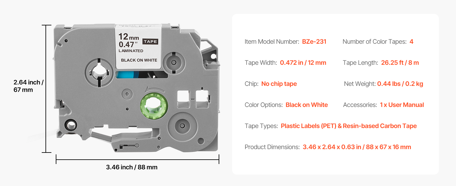 | Item Model Number | Compatible with Brother TZe-231 |