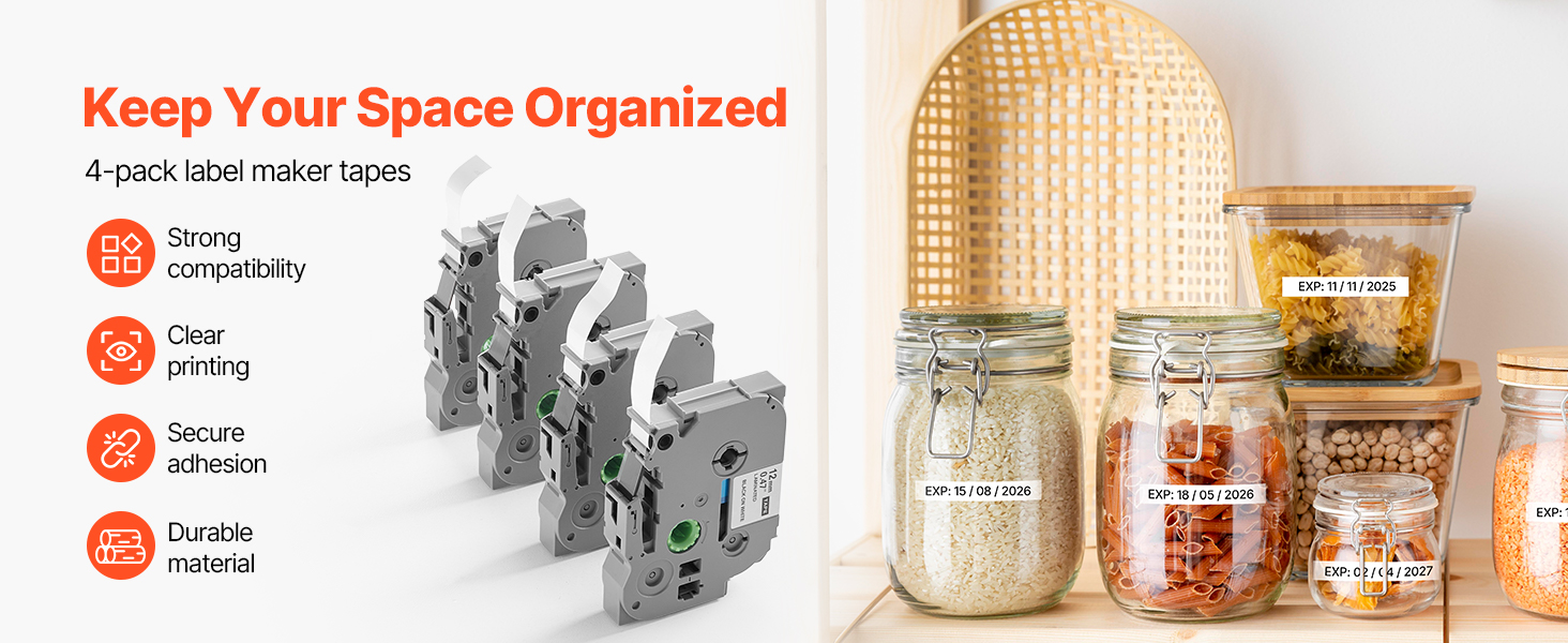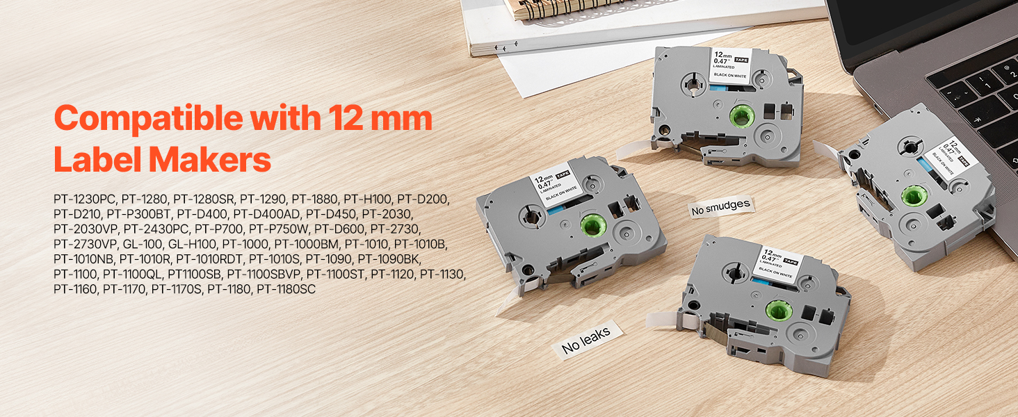 Our label maker tape works with a variety of Brother P-Touch label makers like PT-1230PC, PT-1280, PT-D200, and so on. No need to worry about compatibility — it meets all your labeling needs with ease.