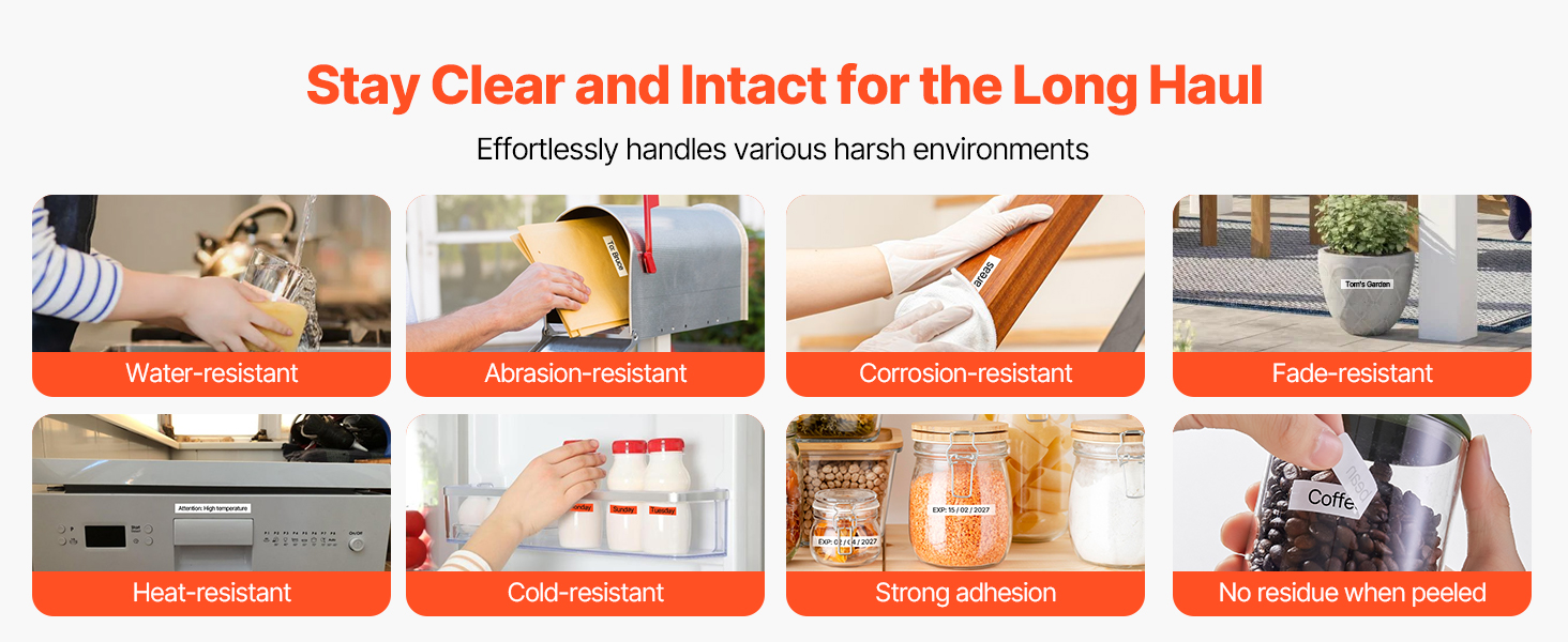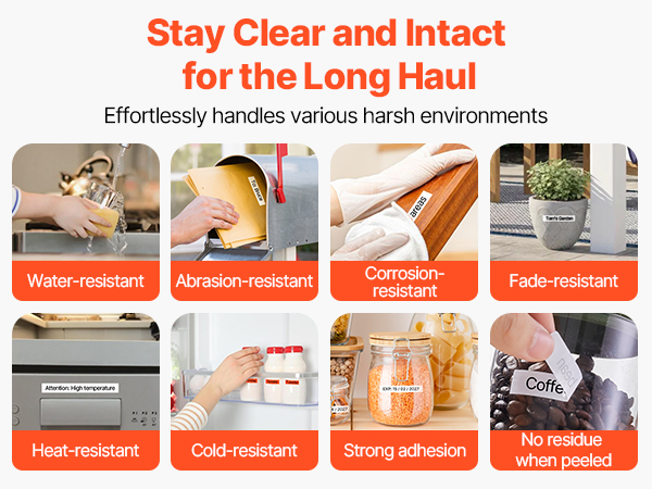 - Long-lasting & Durable: Built to last! Made with high-quality PET material and resin-based ink, this label tape is waterproof, scratch-resistant, and fade-proof. It’s tough enough to handle daily wear while keeping your labels looking fresh