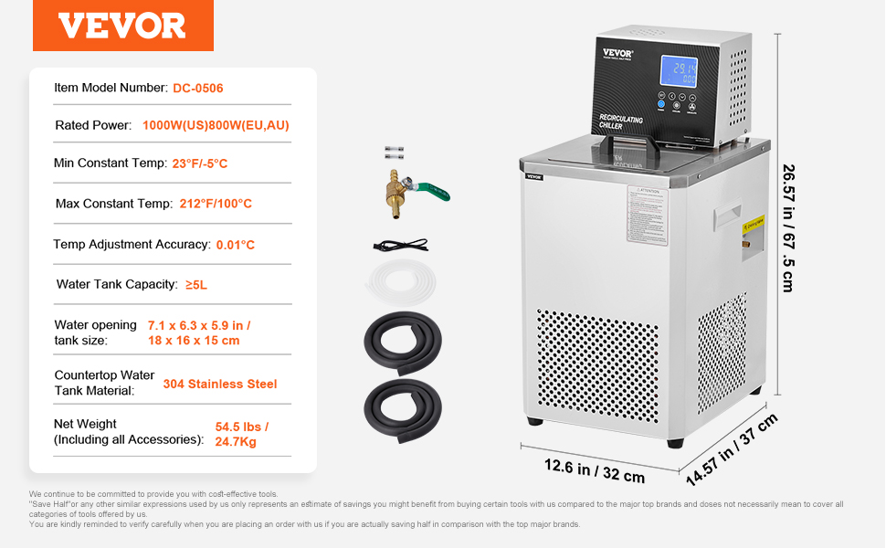 10 reviews for Laboratory Chiller Circulator, 6L Chiller Lab Low Temperature Cooling Liquid, 23°F-212°F Circulator Pump Chiller, LCD Display, 304 Stainless Steel Water Bath Recirculating Water Cooling Chiller