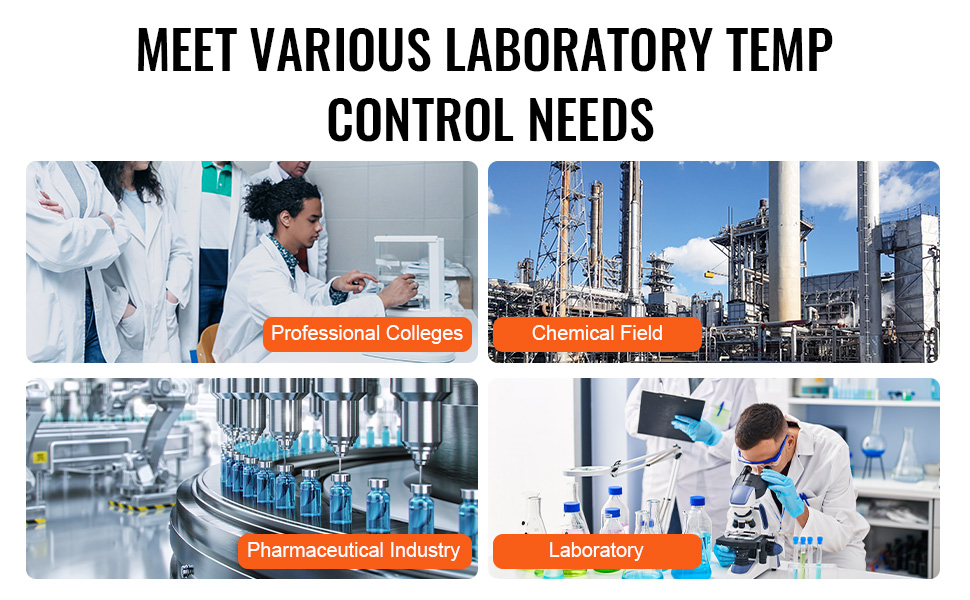 • Wide Application: The lab chiller cooler is particularly suitable for chemical, biological, and physical laboratory work under normal or extreme temperature conditions. It is ideal for biotechnology, food processing, chemical engineering, metallurgy, chemical analysis, petroleum, and other fields. Note: The equipment supports ethanol as a refrigerant and is plug-and-play, requiring no voltage adjustment before use.