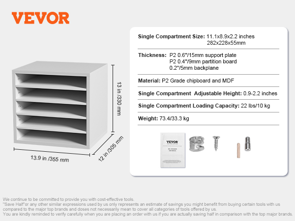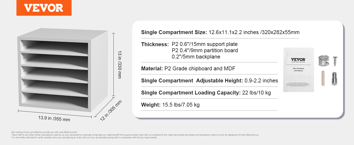 - Maximize Your Space: Say goodbye to cluttered desktops with VEVOR 13.9''x12''x13'' wood literature organizer. It has 5 compartments in total. You'll have ample space to store and organize books, documents, magazines, papers, and other materials. Keep your workspace neat and tidy with ease.