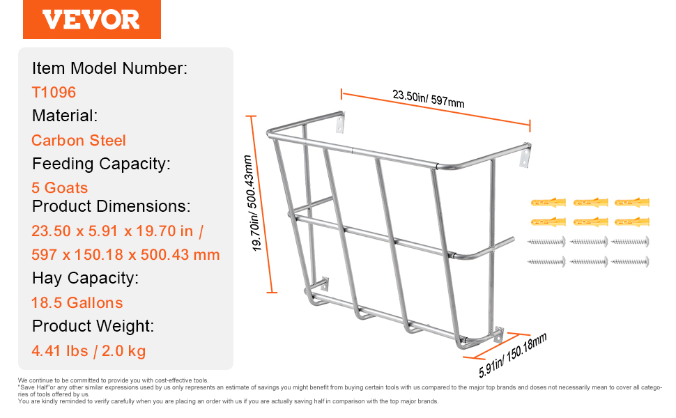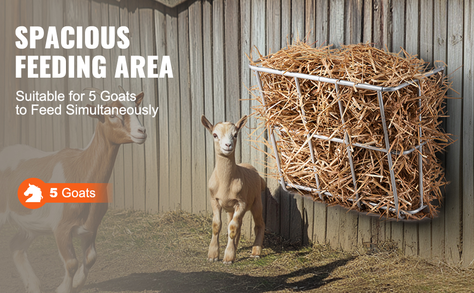 This wall-mounted hay feeder combines 18.5 gallons, heavy-duty steel, and a rounded-edge design that is suitable for feeding up to 5 goats at once and easily mounts to a variety of walls. The full weld process and powder coating ensure durability, and the wall-mounted design for multiple scenarios.