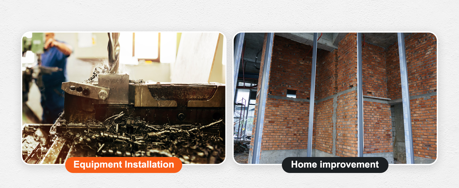 A: The magnetic drill can bore on steel and iron structures above a 10mm thickness by upright, inverted, and horizontal adsorption. Drilling bits with a diameter of less than 50mm are applied.