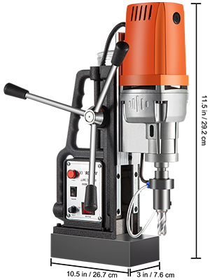 - Superior Performance: Our portable drill press delivers exceptional power via its 1450W copper motor, capable of drilling through the toughest materials at 850 RPM. Maximum Coring Diameter: 2"/50mm; Maximum Travelling Distance: 8.3"/210mm.