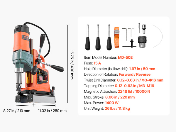 Our mag drill press features a 15A fuse, avoiding motor damage from excess load.