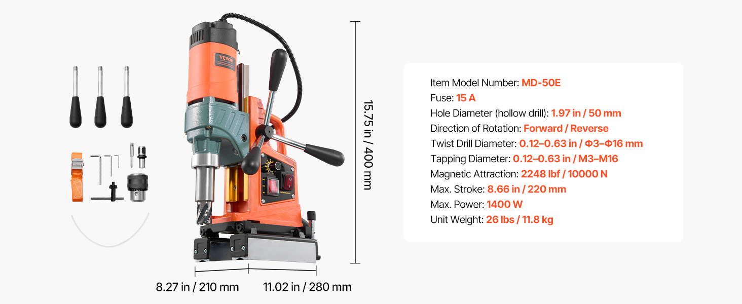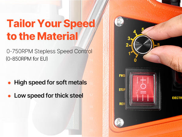 - Precision Speed & Extended Travel: 10-level speed dial suits materials from soft metals to hardened steel, ensuring optimal cutting and less bit wear. The magnet drill features an 8.66 in stroke and clear scale for consistent, accurate drilling