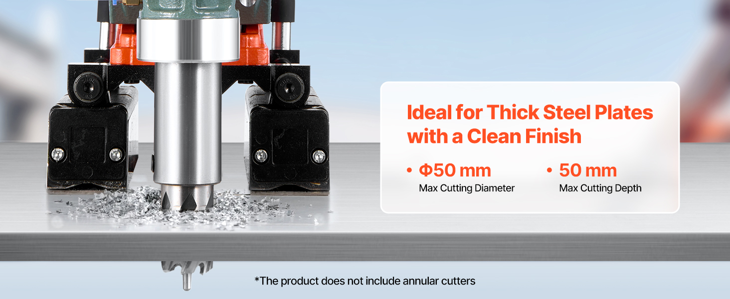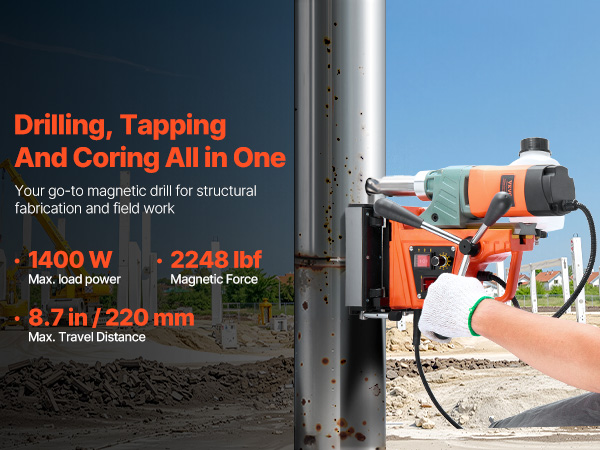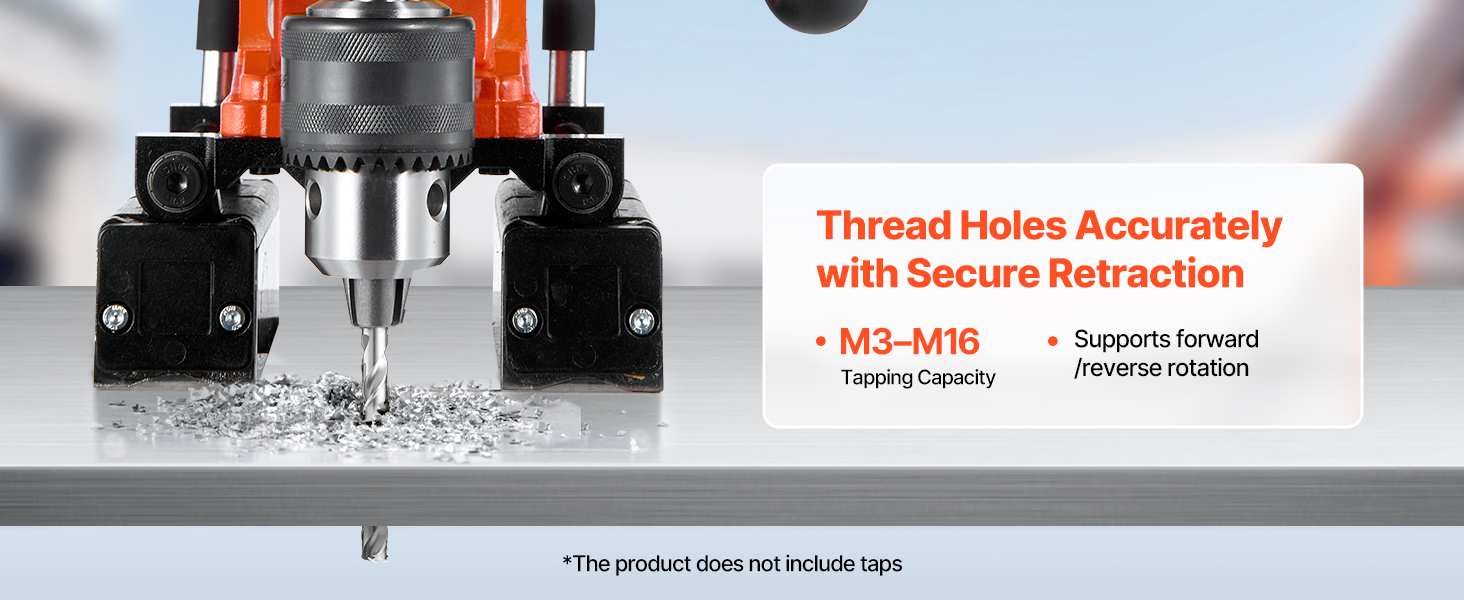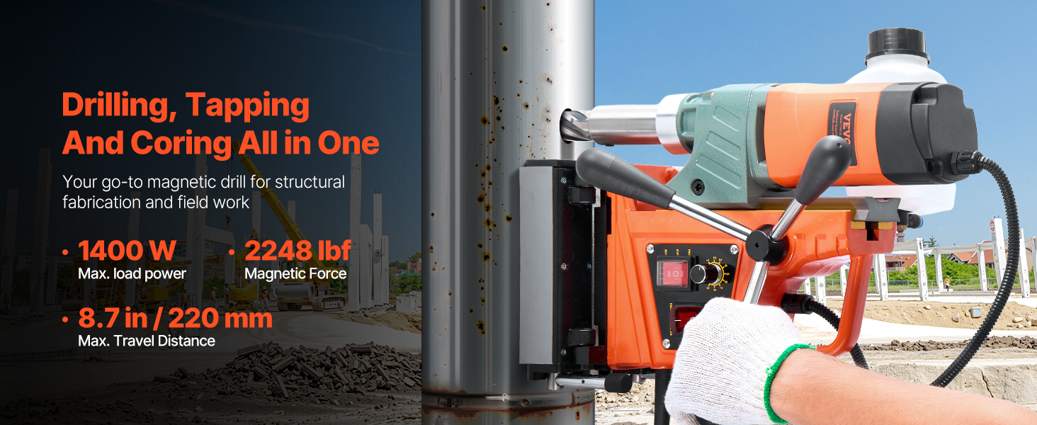 - Multiple Functions: This magnetic drill press combines annular drilling, twist drilling, and tapping in a single tool. Whether you're boring holes in thick plates, threading bolts, or drilling into pipes, it handles tasks with professional precision