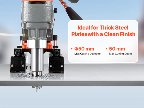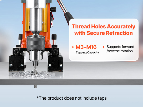 - Multiple Functions: This magnetic drill press combines annular drilling, twist drilling, and tapping in a single tool. Whether you're boring holes in thick plates, threading bolts, or drilling into pipes, it handles tasks with professional precision