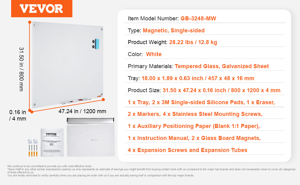 - Frameless Design: The 48"x32" frameless glass whiteboard exudes simplicity, especially with a sturdy tray for convenient marker storage. Enjoy easy writing, wiping, and ample space for creativity, fostering a more efficient and comfortable workspace.