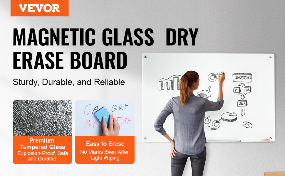 - Smooth Writing: Write freely and clean effortlessly with a gentle wipe, restoring the smooth surface without any marks. Crafted from sturdy tempered glass, the magnetic glass board resists scratches, dents, and stains.