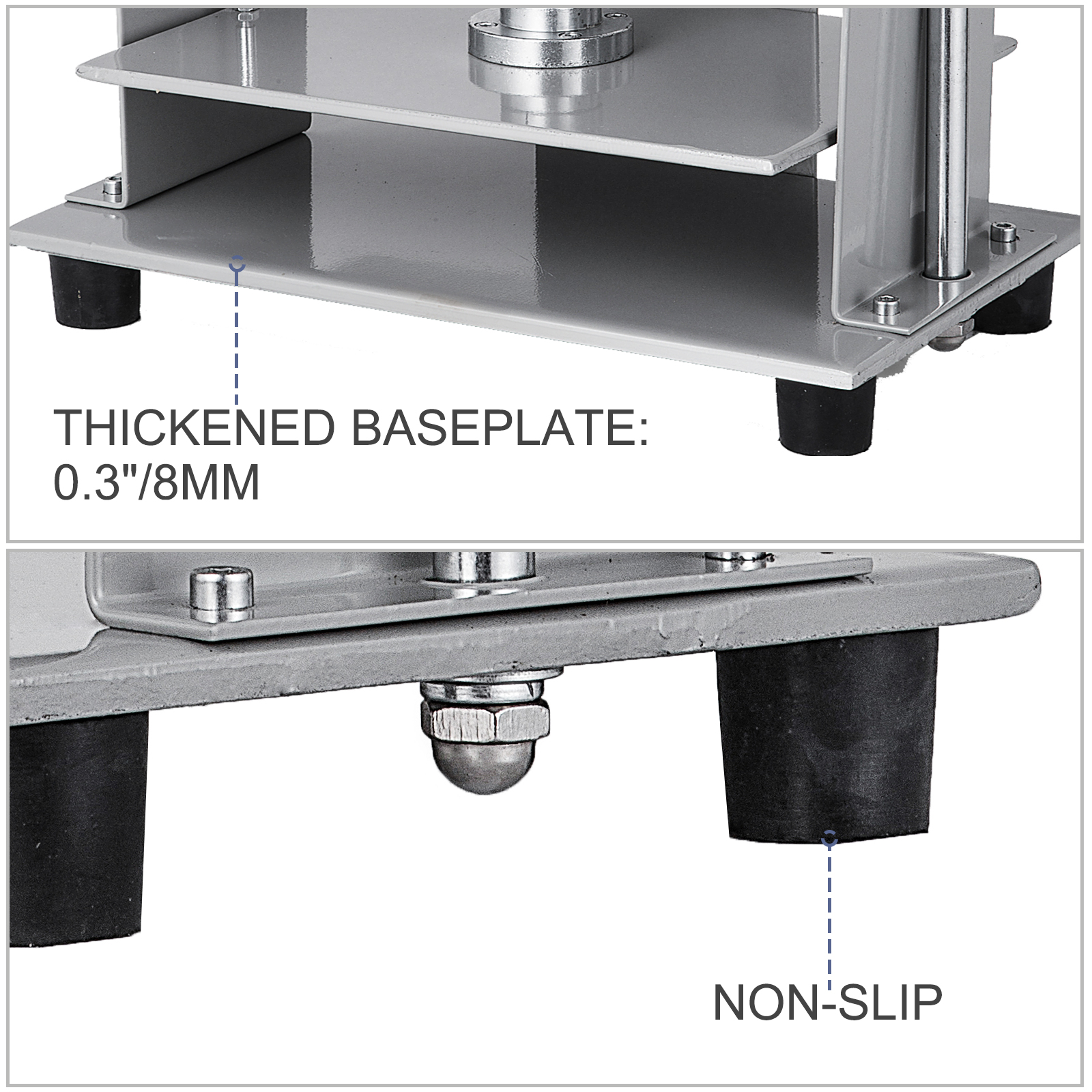 The intense pressure of 3306 lbs (1500 KG) is attributed to the rotary handle, elongated nut, and thickened plate, assisting you in work without any effort.