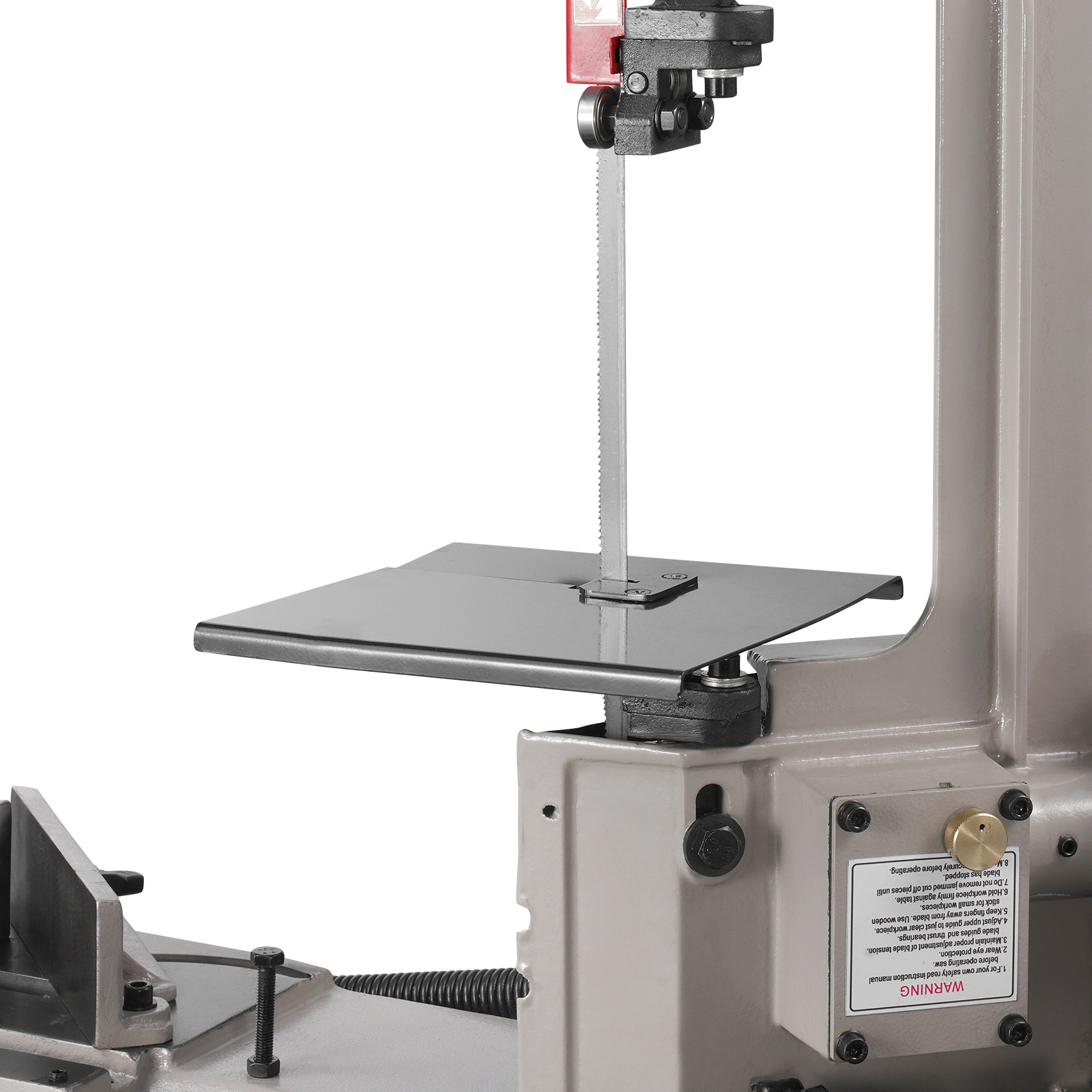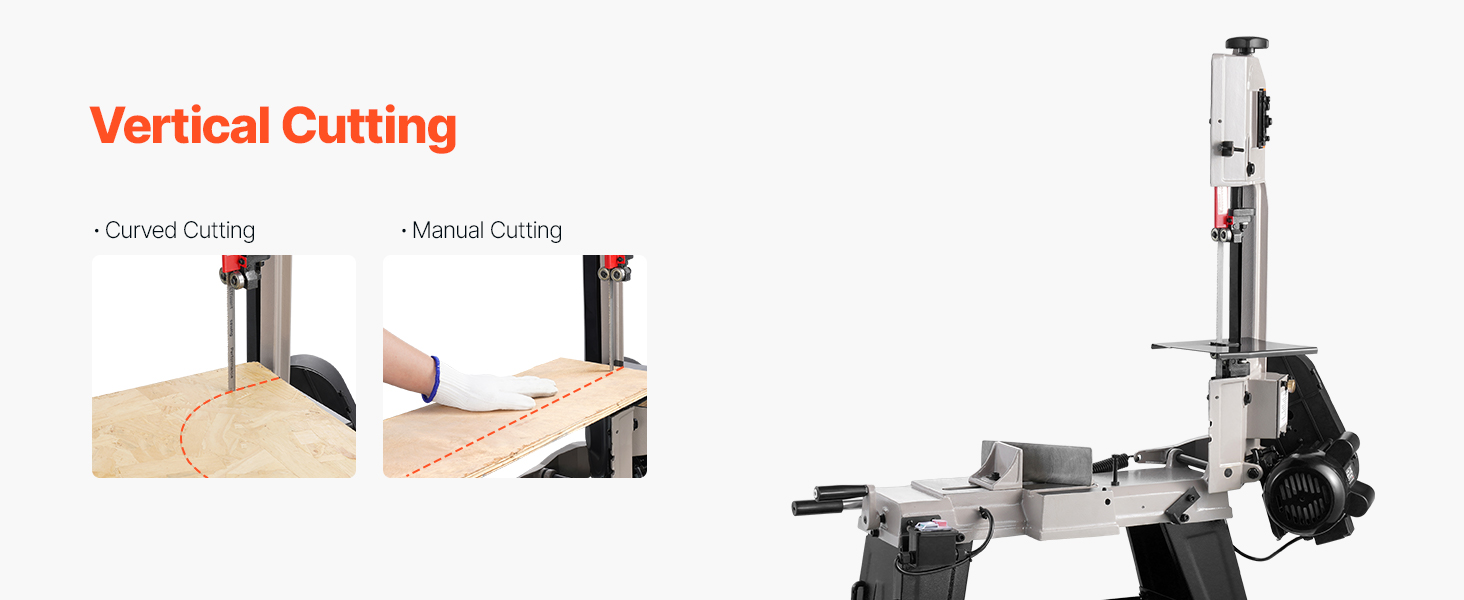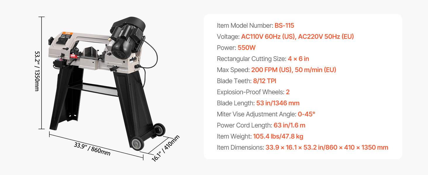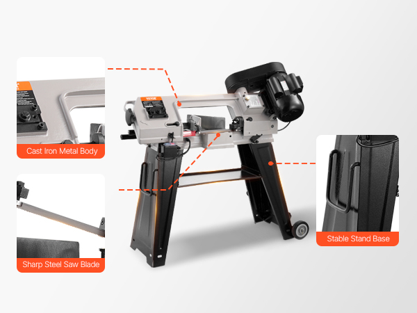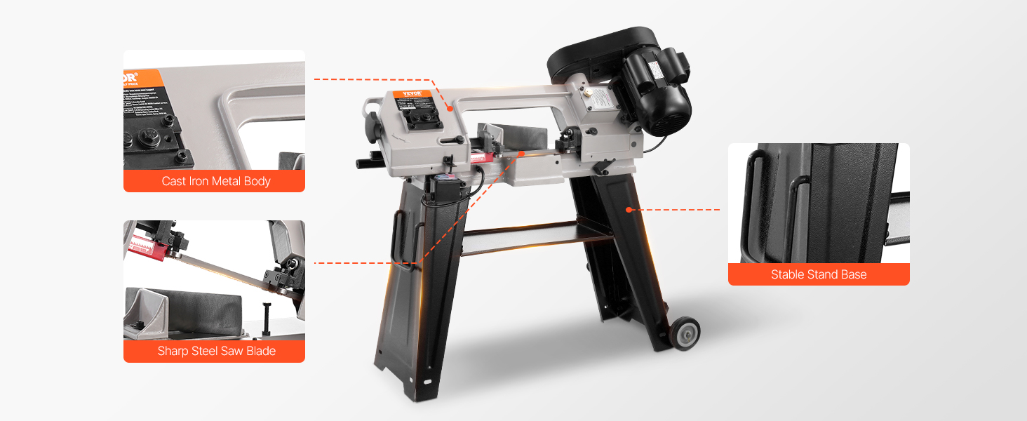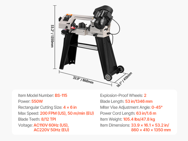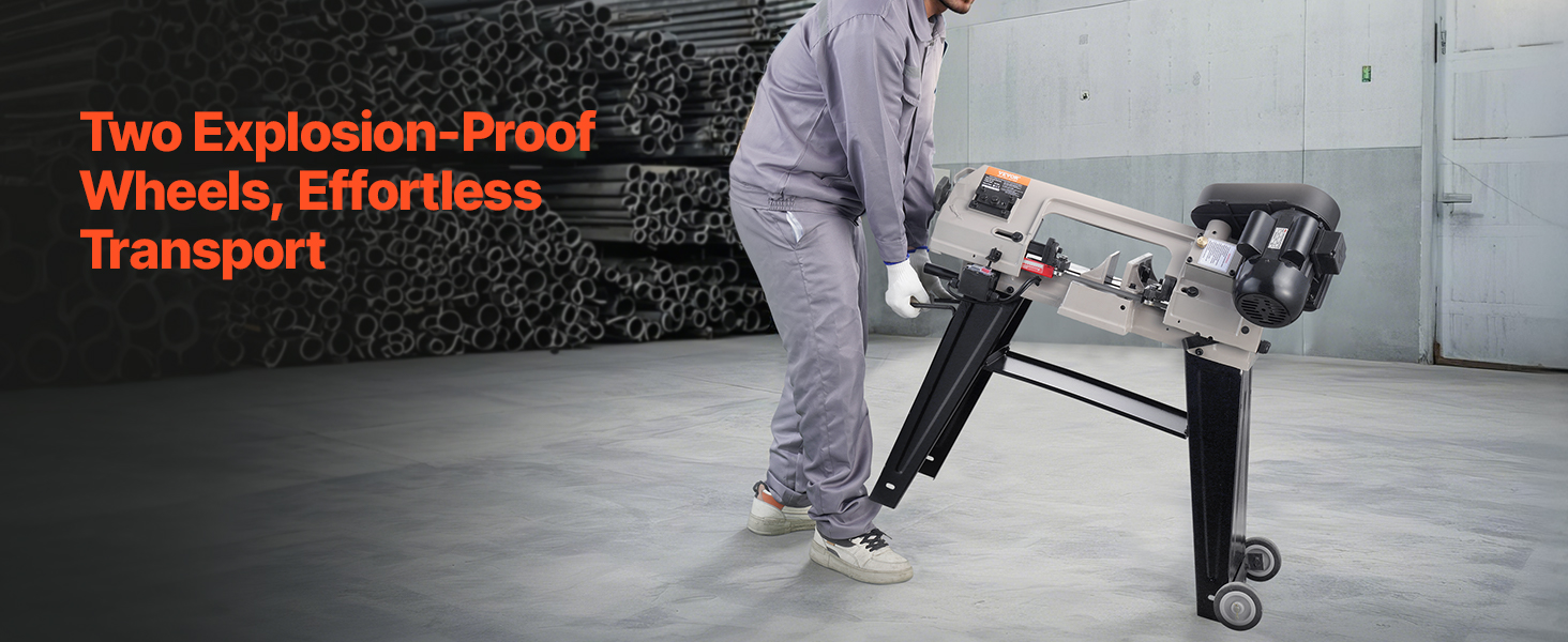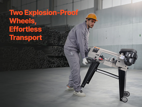 - Durable and Long-Lasting: Crafted from sturdy, wear-resistant cast iron, this horizontal bandsaw is built to last. The stable base and two rolling wheels ensure durability and portability for various locations. The 8/12 TPI steel blade, measuring 53 in, ensures smooth, uninterrupted cutting for a range of material thicknesses and hardness