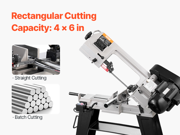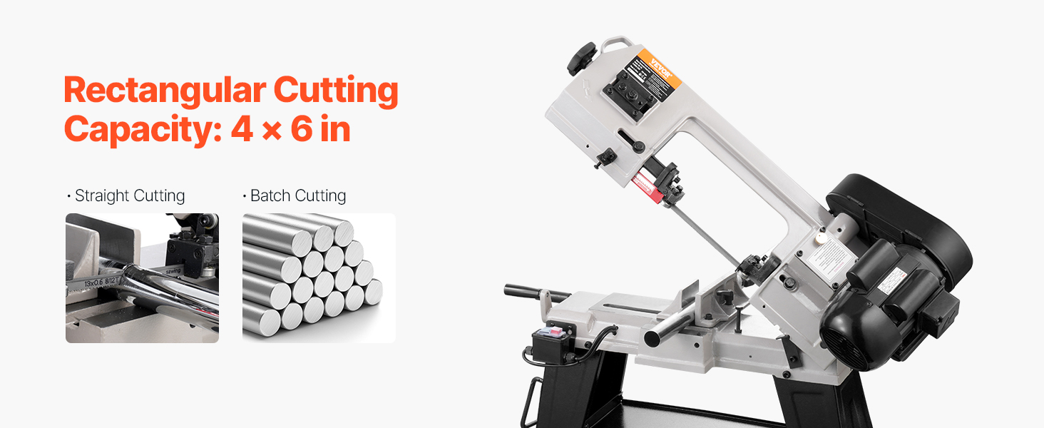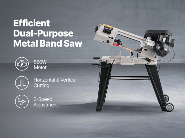 - Powerful Cutting Performance: The metal horizontal band saw features a robust 550W motor with a speed of 1680 RPM, delivering consistent power for efficient cutting tasks. It supports both horizontal and vertical cutting modes, easily handling straight, curved, and intricate shapes with a cutting capacity of 4 x 6 in