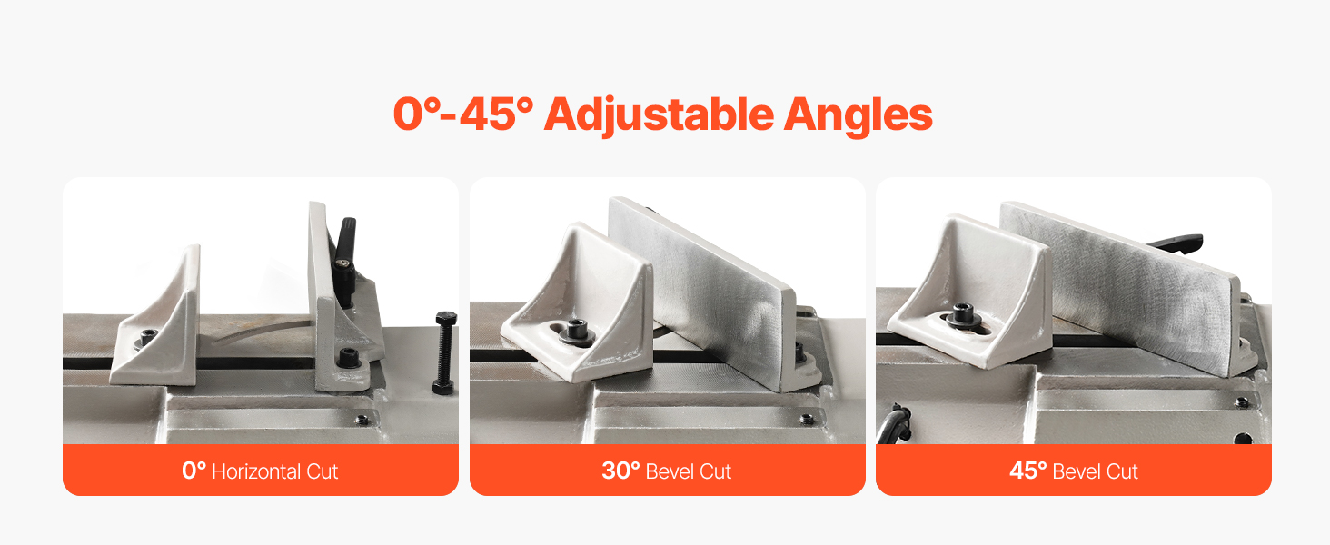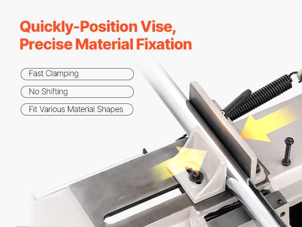- Precision Cutting Made Easy: The horizontal/vertical metal cutting band saw uses a quick-lock vise to hold materials firmly in place without shifting, while the manual fine-tuning mechanism enhances stability. The vise provides 0° to 45° adjustable angles with a locking feature and scale, allowing for straight and angled cuts with clean, polished edges
