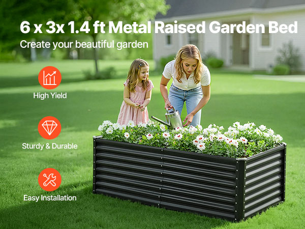 - Create a Stunning Garden: Our 6 x 3 x 1.4 ft raised garden bed provides ample growing space for your plants. Its 1.4 ft depth is ideal for medium and deep-rooted plants. Grow vegetables, fruits, flowers, and herbs in gardens, farms, fields, or open areas