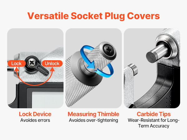 - Precise Performance: Built with a carbide-tipped measuring face, this digital micrometer ensures long-lasting accuracy and wear-resistance. The lock nut prevents slippage, while the ratchet thimble provides smooth control and stable precision over time.