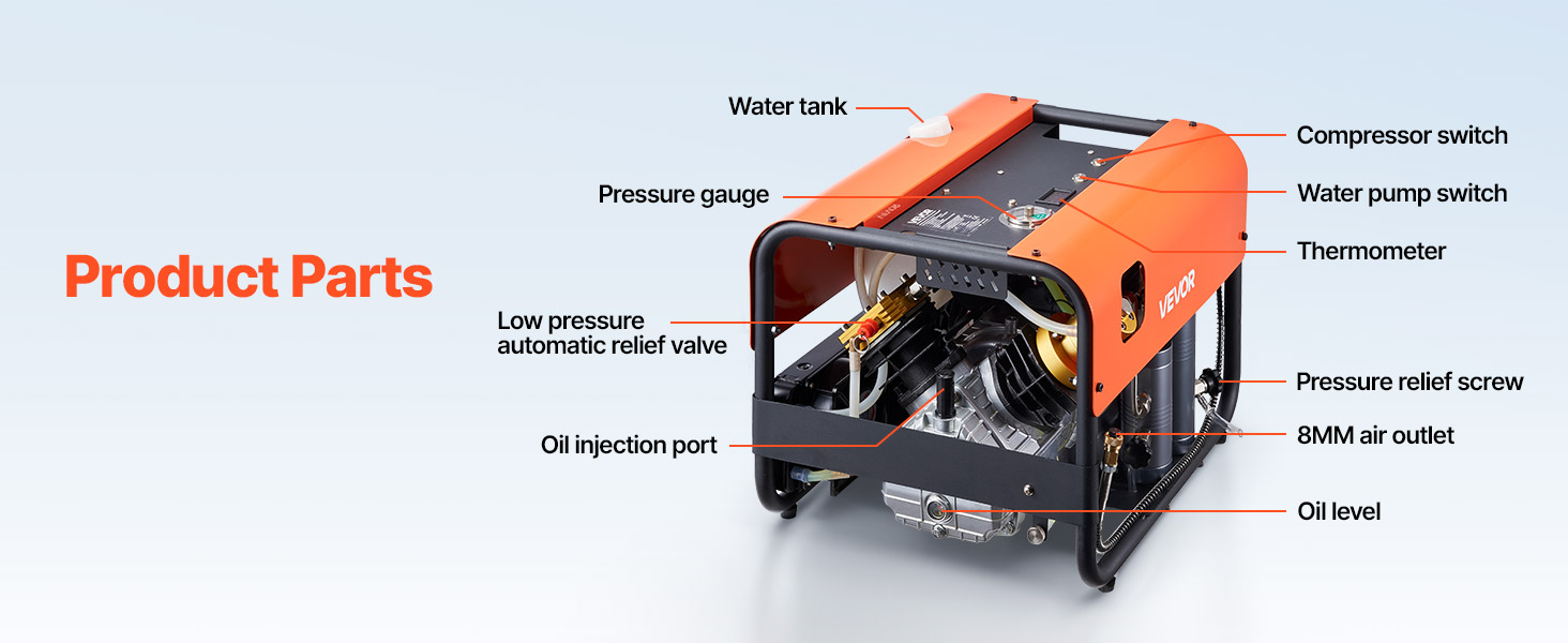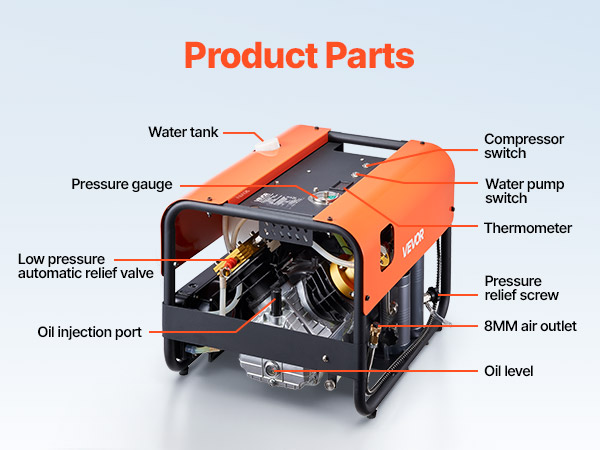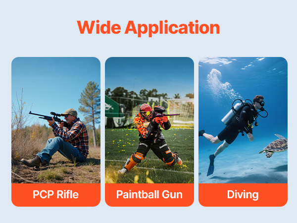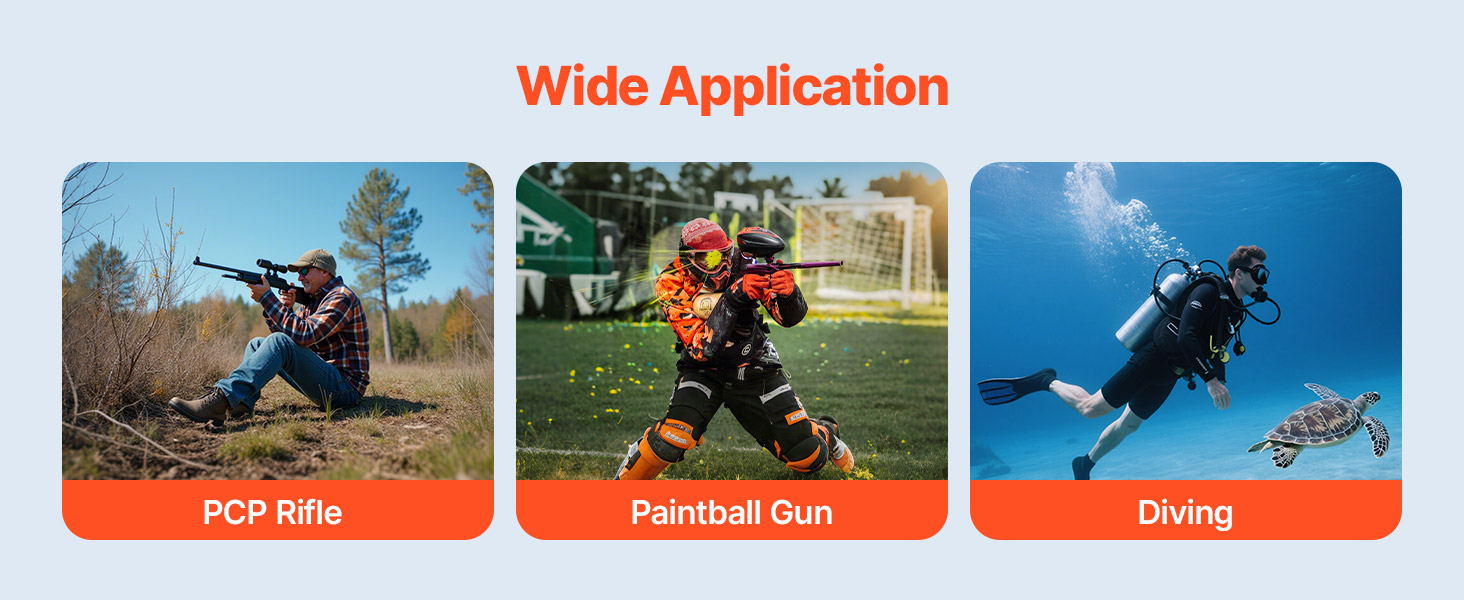 - Wide Applications: Widely used in scuba diving, PCP rifles, paintball shooting, firefighting, leak detection, air – tightness testing, and more fields, meeting various high-pressure air needs. (PLEASE NOTE: Lubricating oil need use EC750 edible grade)