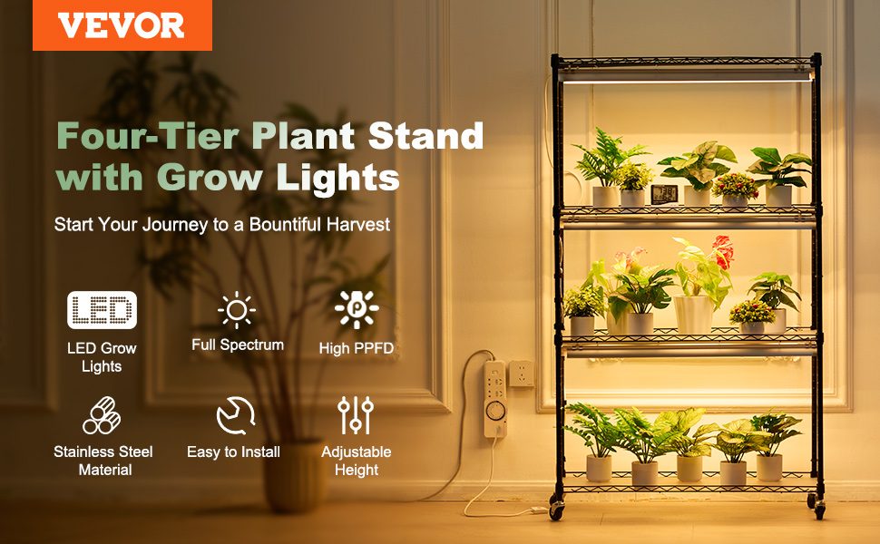 VEVOR 4 Tiers DIY Plant Stand with Grow Light