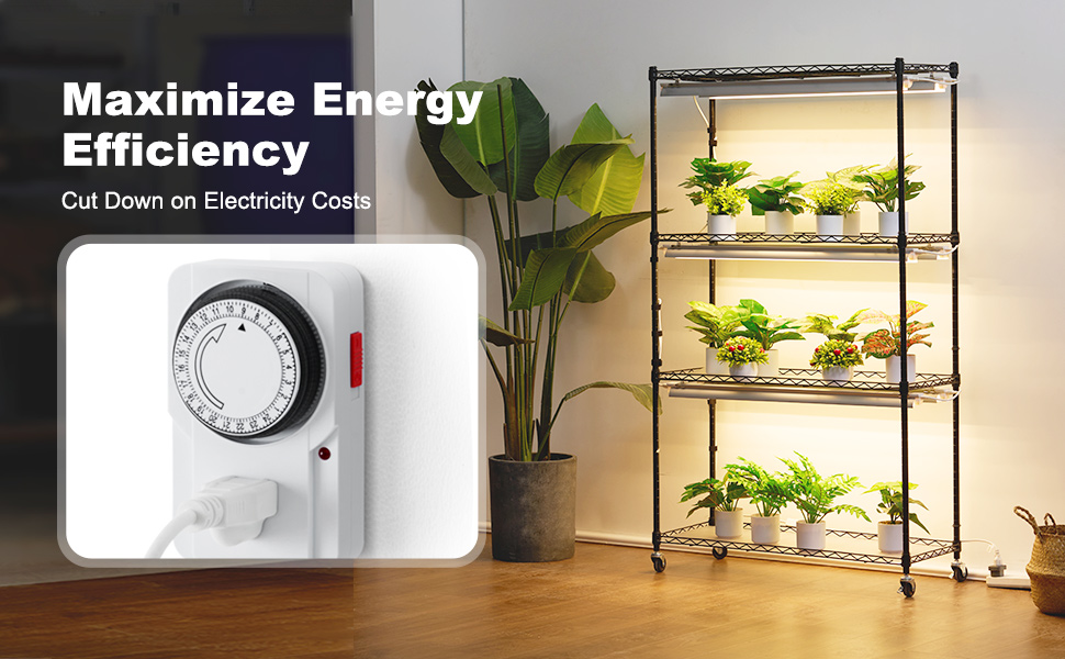 The metal plant rack features a mechanical timer that can accurately set the switch time, reducing unnecessary energy waste.