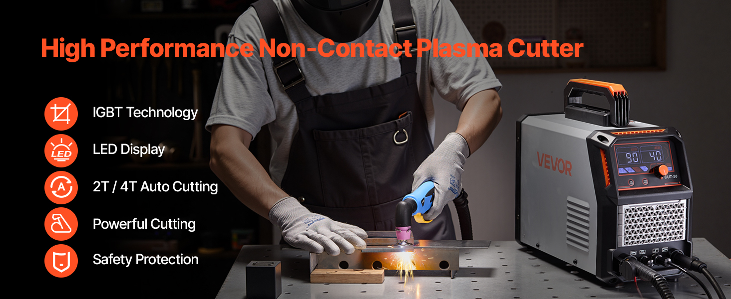 This plasma cutter delivers a powerful 50A output, easy to cut through various metals. With non-touch pilot arc, 110/220V dual voltage, smart control, 2T/4T function and a clear digital display, it ensures stable output for smooth and efficient cutting in home garage and repair workshops.