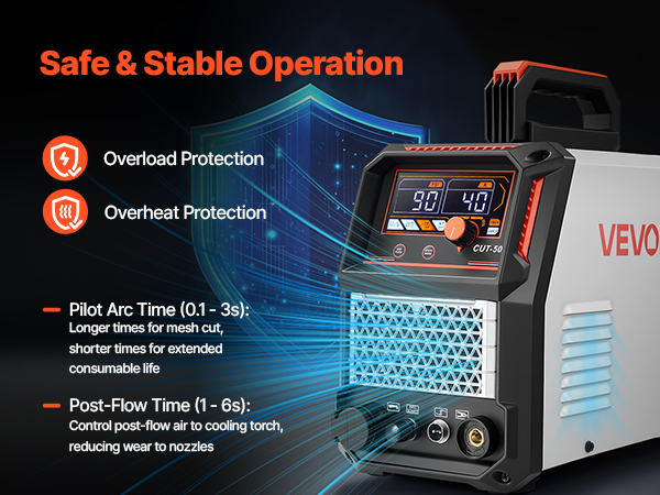 - Digital Display: The 110/220V plasma cutting machine features a large digital display with a clear and intuitive interface, allowing for quick adjustments and real-time monitoring. Built in overheat and overload protection for safer operation and longer lifespan