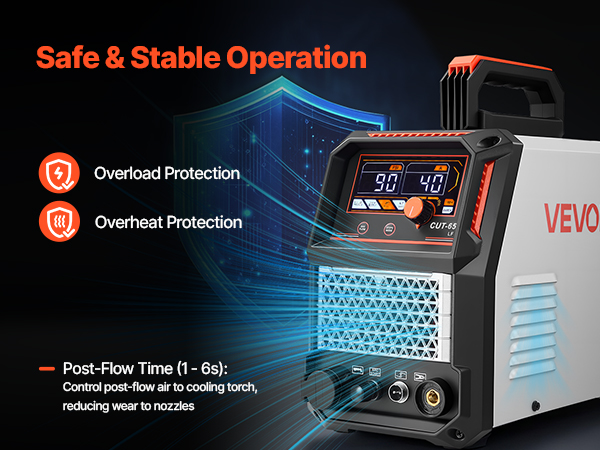 - Digital Display: The plasma cutting machine features a large digital display with a clear and intuitive interface, allowing for quick adjustments and real-time monitoring. Built in overheat and overload protection for safer operation and longer lifespan