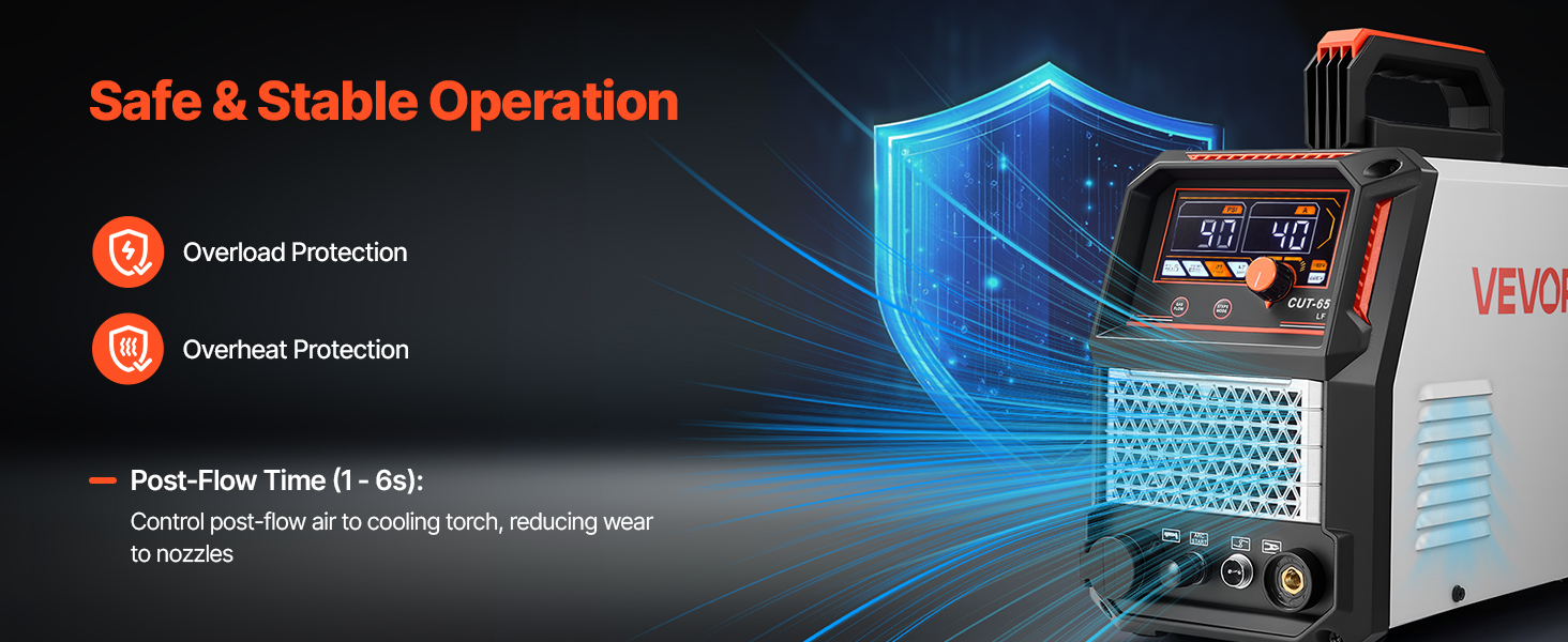 This non-high frequency plasma cutter combines powerful performance, intelligent control, and enhanced safety to ensure efficient, precise, and secure cutting—ideal for both home repairs and workshops.