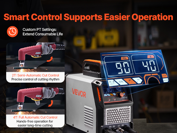 Featuring both 2T and 4T functions: 2T enables semi-automatic cutting for short, precise tasks, 4T supports automatic cutting for extended continuous operations. Also supports adjustable PT time to extend the life of consumables.