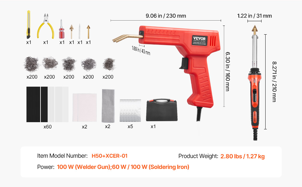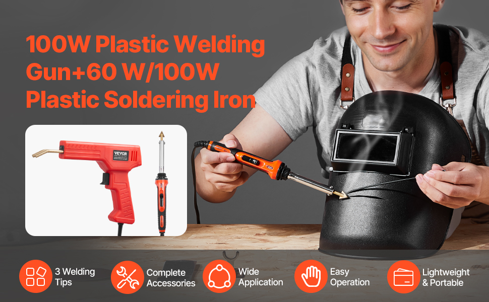 - Dual-Tool Configuration: Easily repair your plastic items with our deluxe plastic welding kit! The 100W plastic welding gun handles crack repairs, and the 60W/100W soldering iron smooths over surface scars, providing a convenient 2-in-1 setup that covers all your plastic repair needs, no need to purchase extra tools.