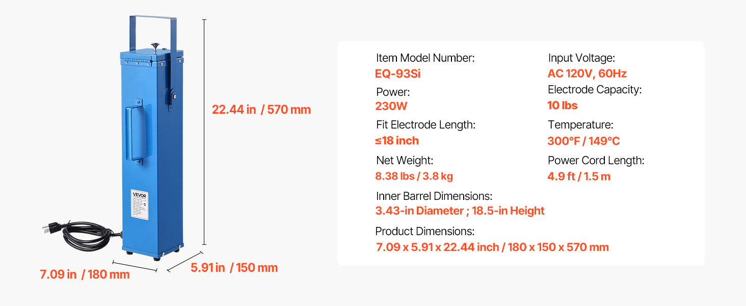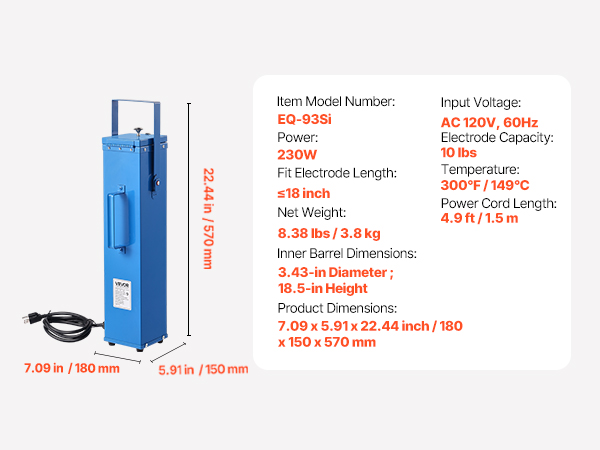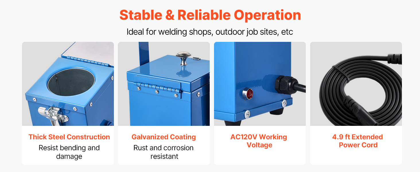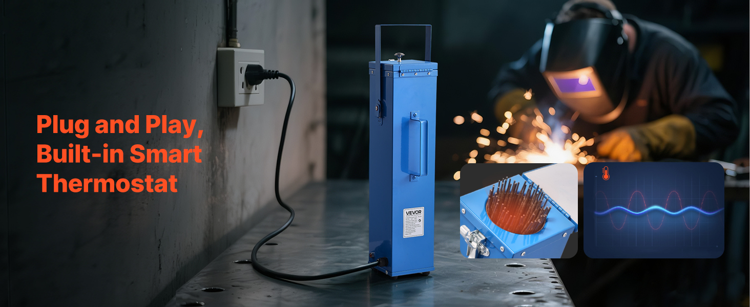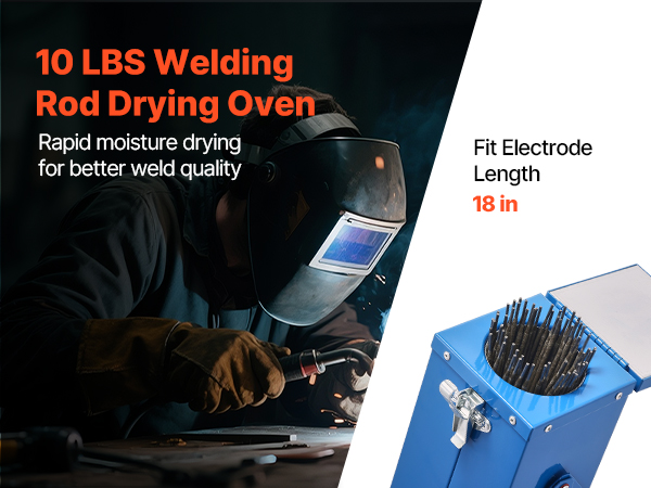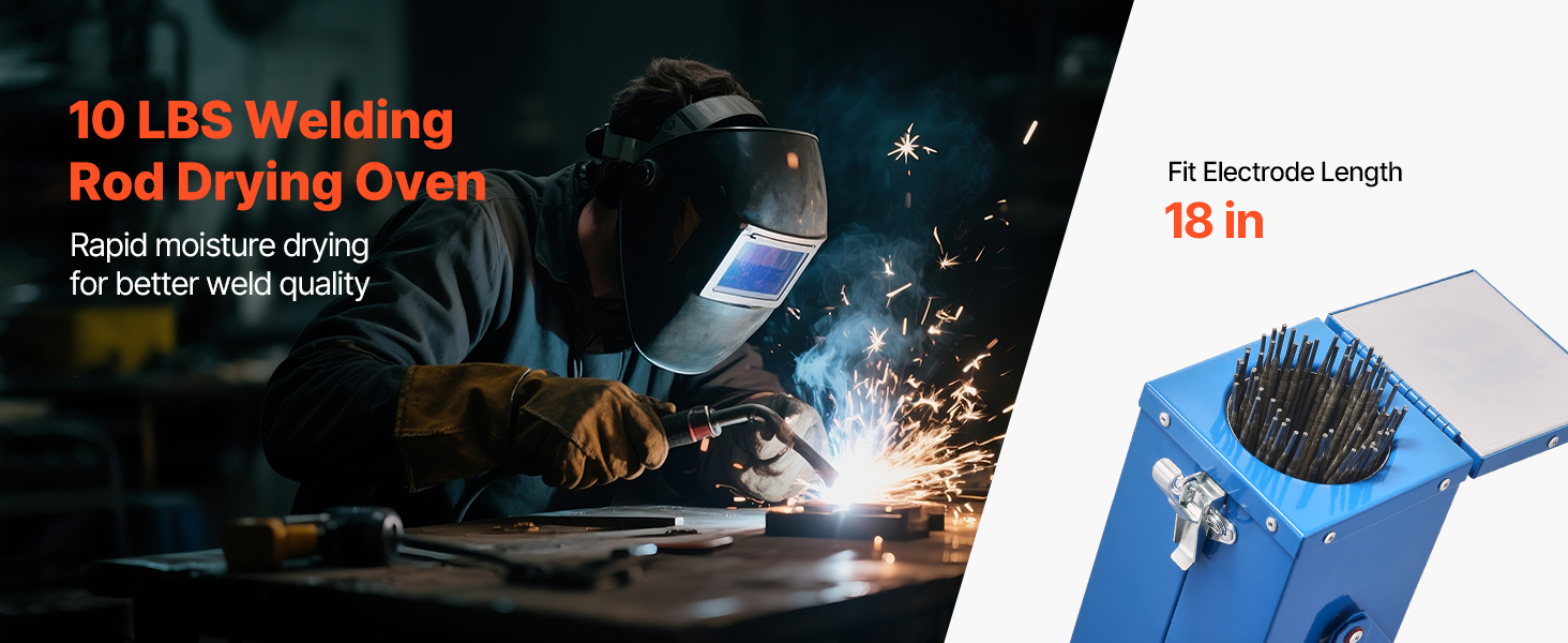 This VEVOR welding rod oven can hold up to 10 lbs of 18-inch electrodes, with a 230W high-power heating system for efficient drying. By keeping the rods dry, it reduces moisture-induced cracking and arc instability, extending the electrode lifespan and improving weld quality.