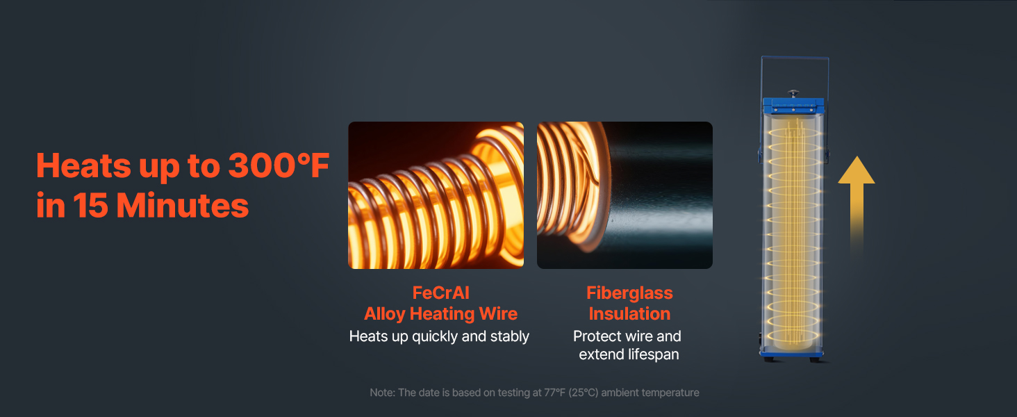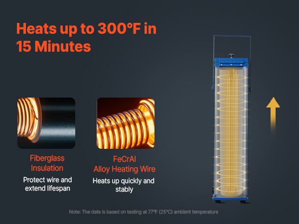 - Fast Heating & Drying: Our 230W electrodes drying oven is equipped with FeCrAl alloy heating wire that heats up evenly and quickly to 300°F. Efficiently transfers heat to the interior walls and speeds up the drying process (Fixed temperature, not adjustable)