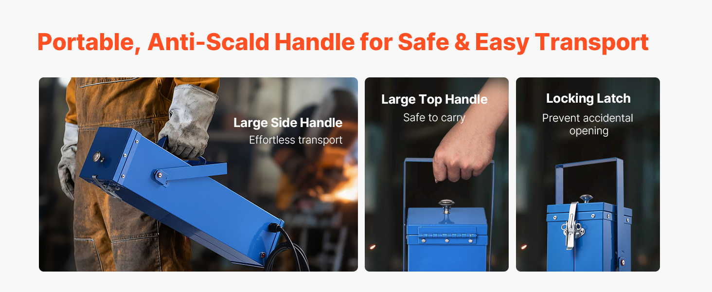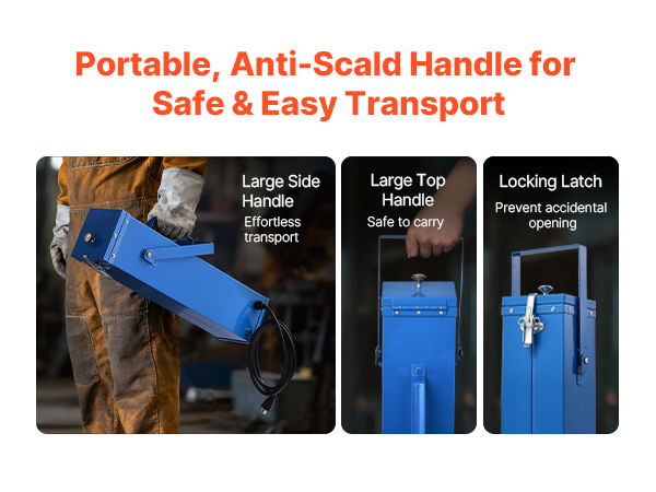 - Safe and Easy Carrying: The welding rod drying oven features a large side handle and top handle, making it easy and safe to transport to worksites. Its safety locking latch design prevents accidental openings, enhancing overall safety during operation