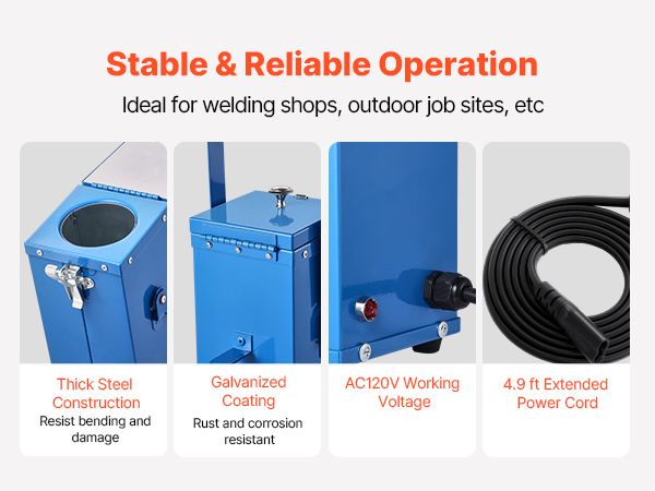 - Humanized Design: Equipped with four anti-slip foot pads to protect surfaces from scratches and damage. 4.9ft extended power cord provides added flexibility. Ideal for use in welding workshops, auto repair shops, and outdoor job sites