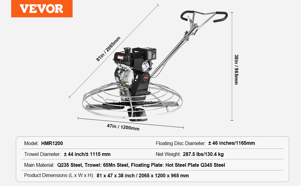 | Trowel Diameter | Φ44 inch / Φ1115 mm |