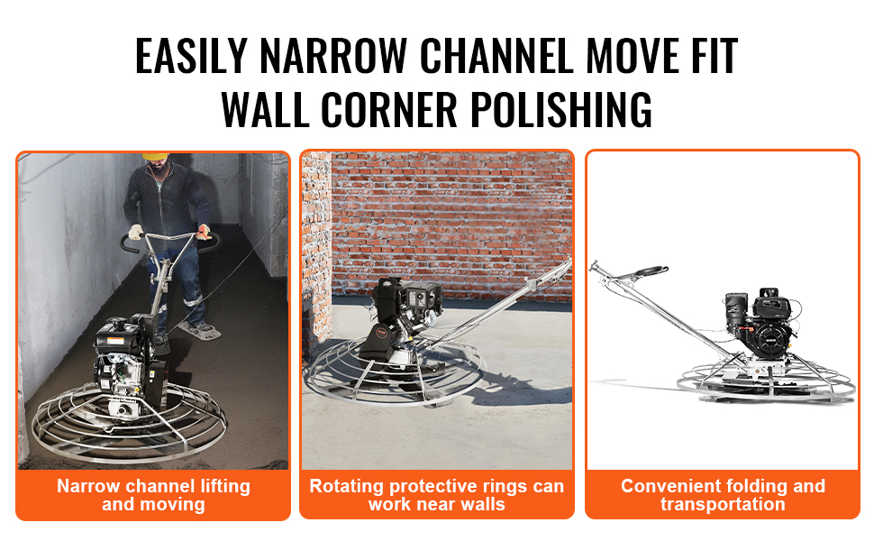 Easily navigate narrow spaces, precisely fit into corners—the best partner for your construction! The compact design of the power trowel allows easy maneuverability in tight areas, freeing up construction space for precise polishing in every corner.