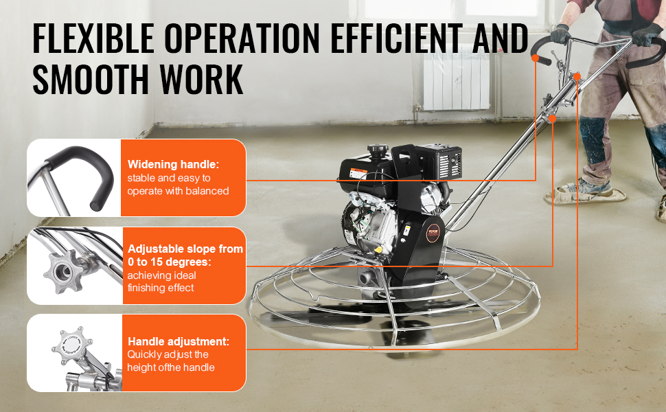 - 0-28° Blade Pitch: Adjust freely for your desired finish, from matte to sparkling concrete surfaces. Achieve subtle mattes, gentle shines, or dazzling concrete slurries with ease.