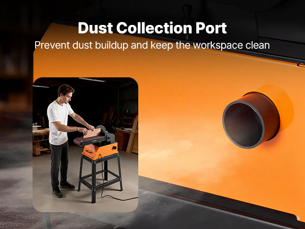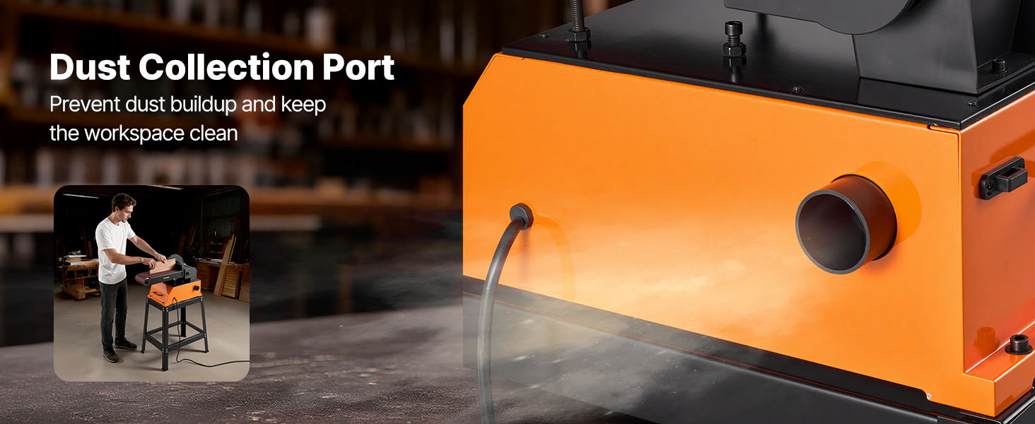 - Dust-Free Operation: The belt and disc sander combo features a dust collection port, enabling easy connection to a vacuum cleaner. This helps maintain a clean workspace and reduces airborne dust for smoother sanding.